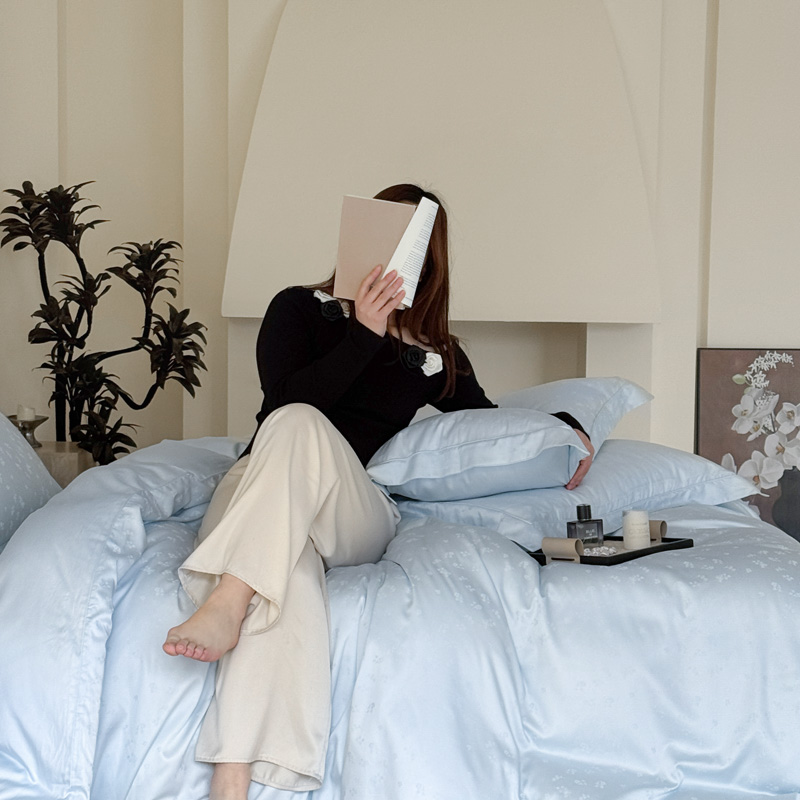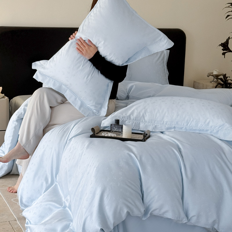 莱豫家纺 2025新款天丝棉提花四件套 罗拉蓝