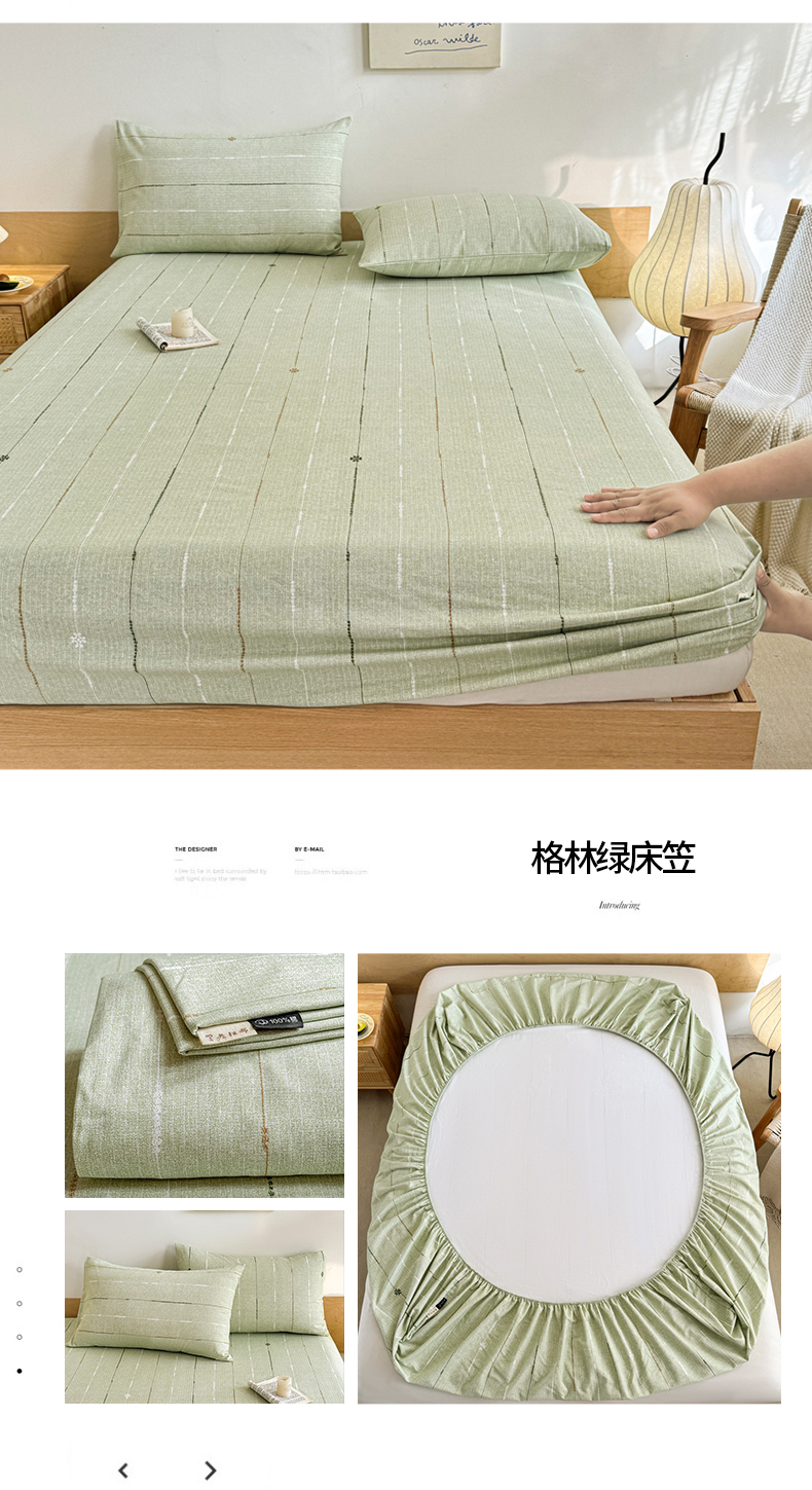 • 91家纺网 家纺一手货源 找家纺 布柔 2025新款100%全棉纯棉老粗布绣花印花凉席单品床笠 米多绿床笠