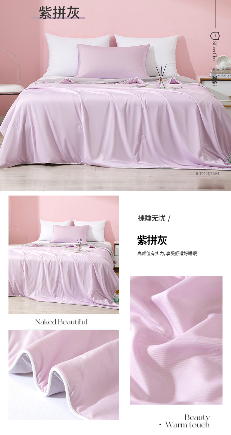 商品名称:萌飞 2025新款凉感科技冰淇淋夏被空调被A类云母氨纶凉感丝夏凉被空调被 紫拼灰