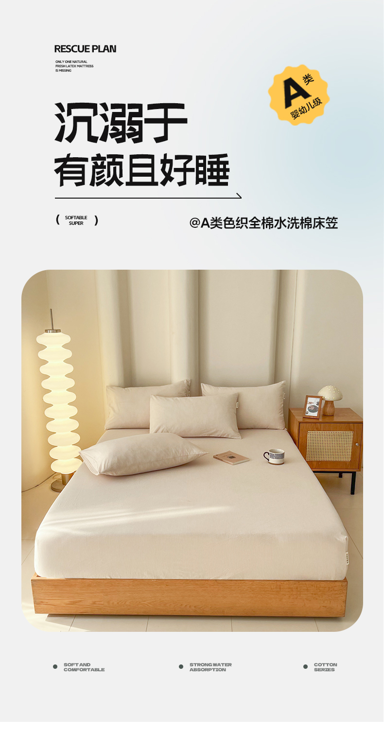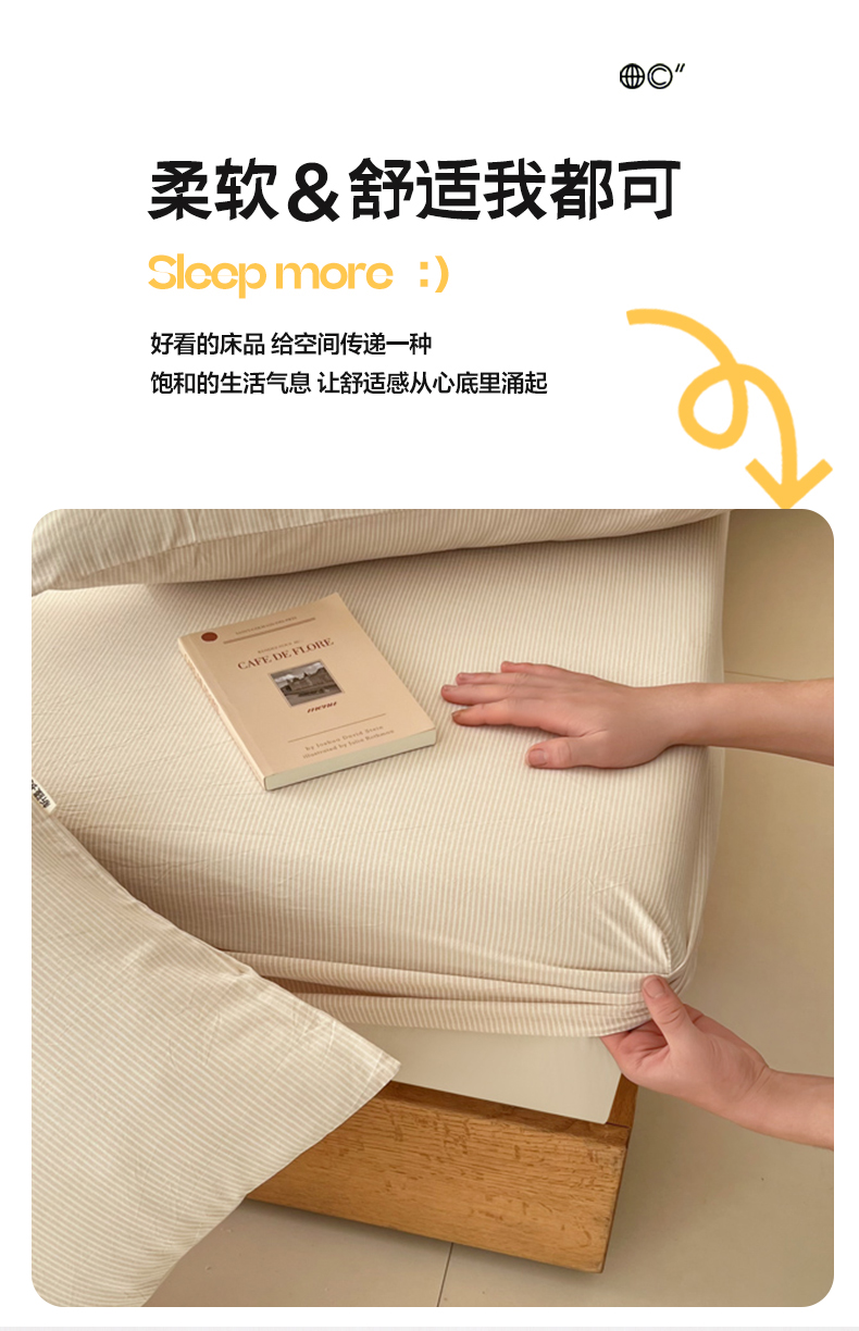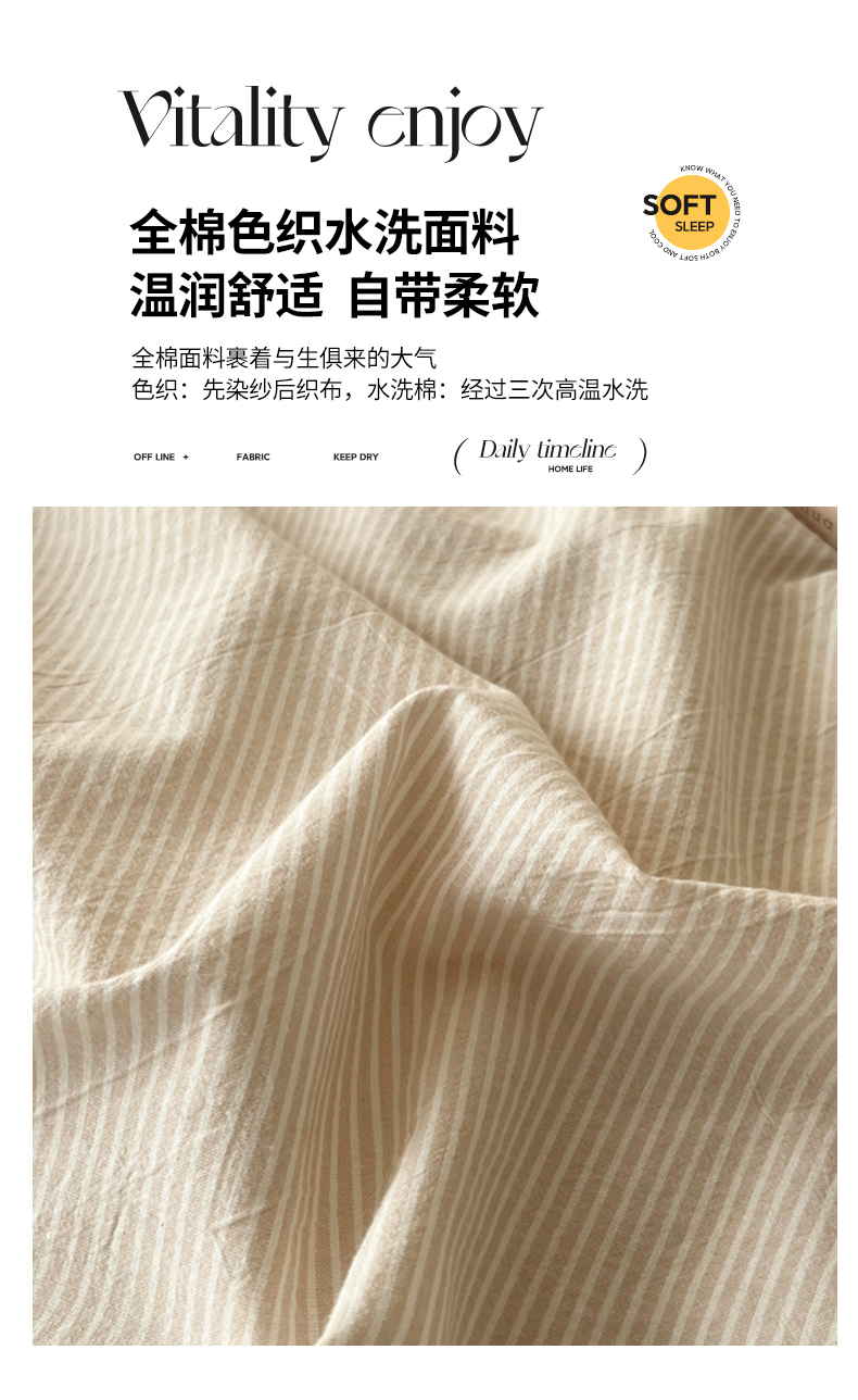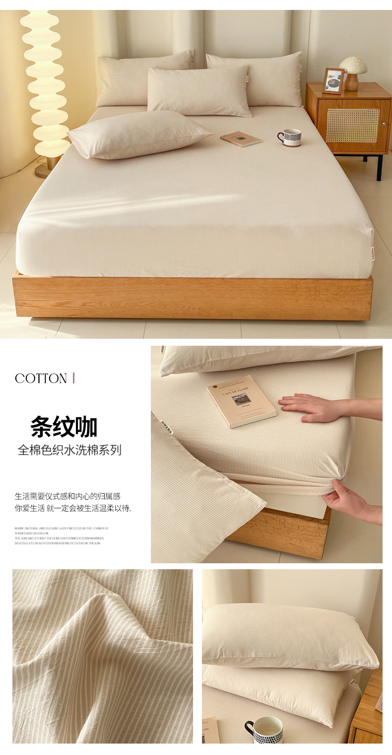 商品名称:恋之语 2025新款全棉纯棉色织床笠单品单床笠床笠单件 条纹咖