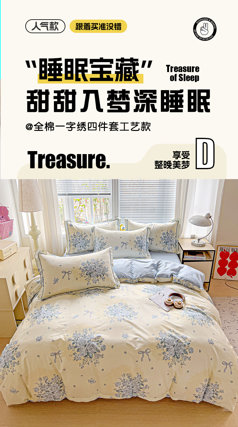 商品名称:暖芯优选 2025新款全棉纯棉一字绣四件套系列 花影轻颜