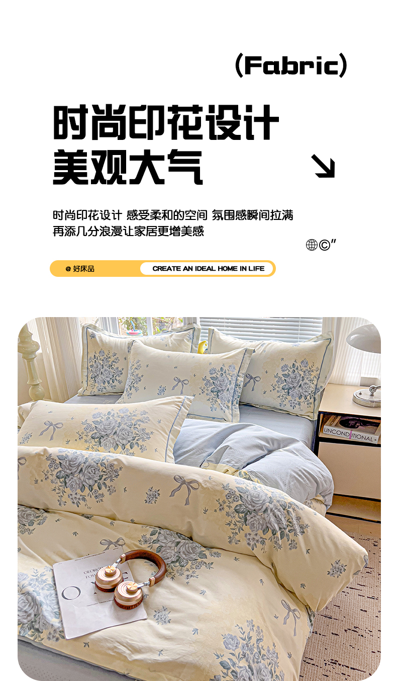 暖芯优选 2025新款小清新印花全棉磨毛四件套 芬迪,芬迪