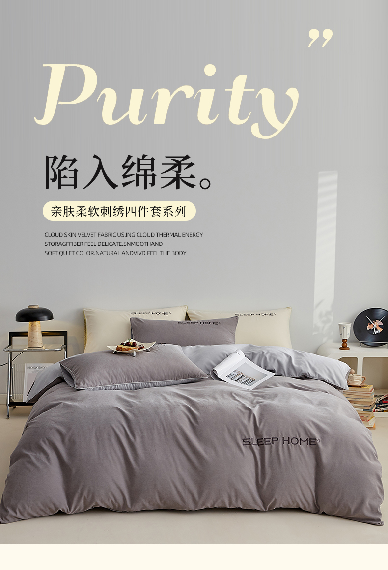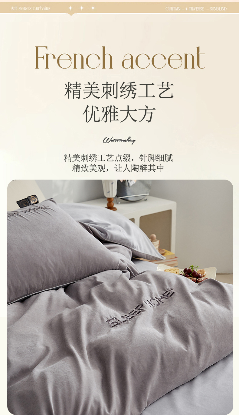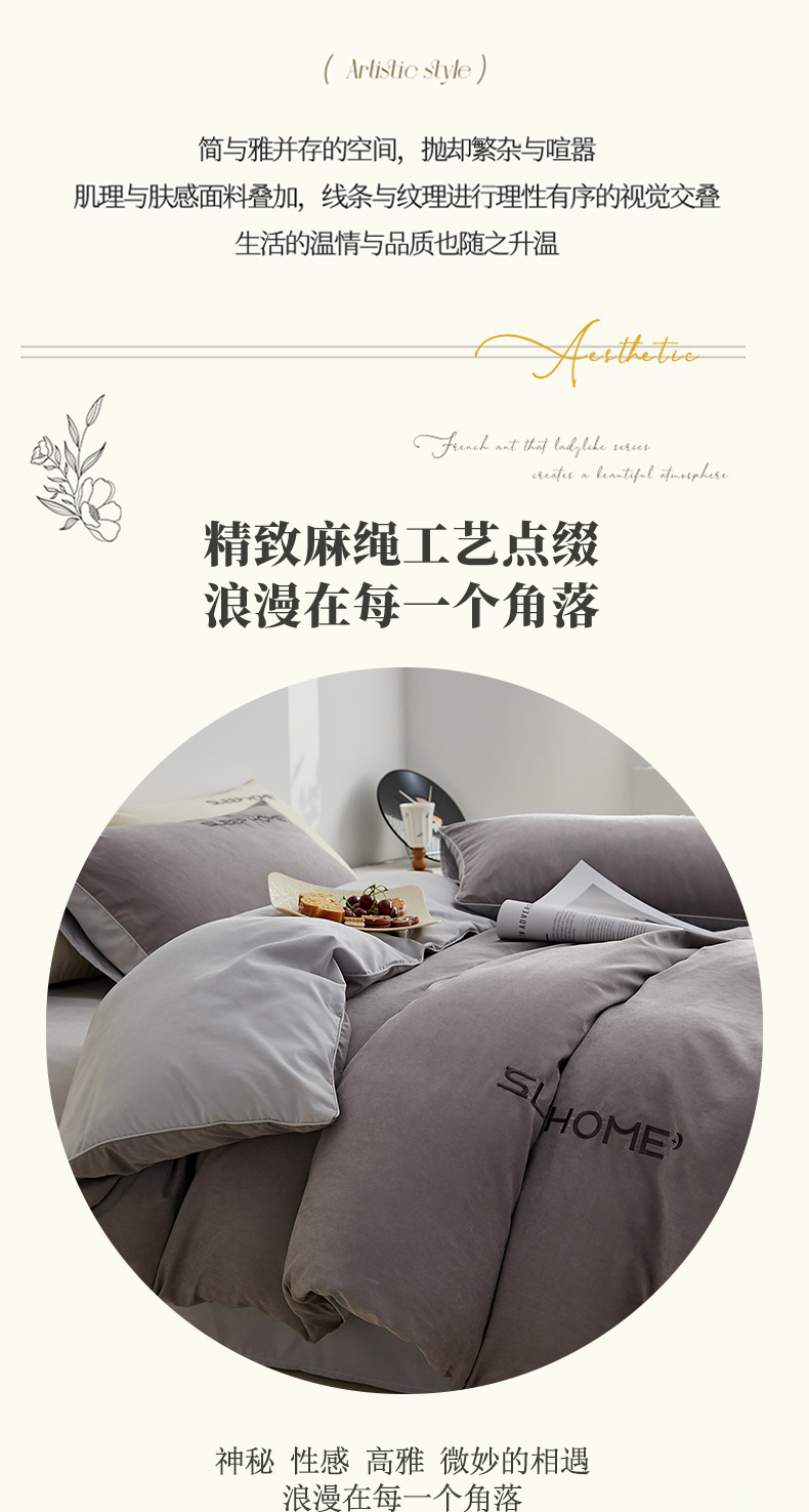 当前位置: 91家纺网 > 商品网购 > 床品套件 > 四件套 > 恋之语 2025新款110克麻绳双拼刺绣四件套 深灰+浅灰