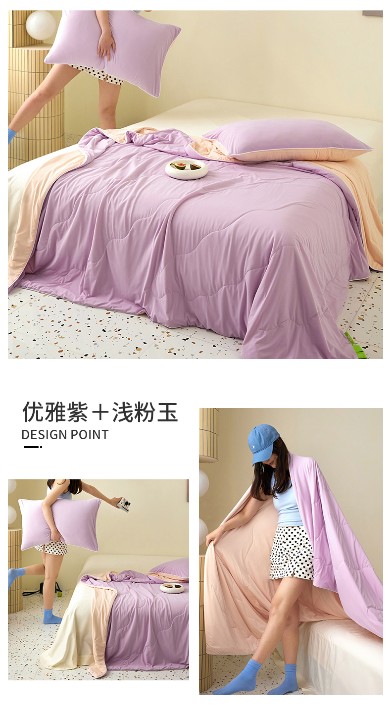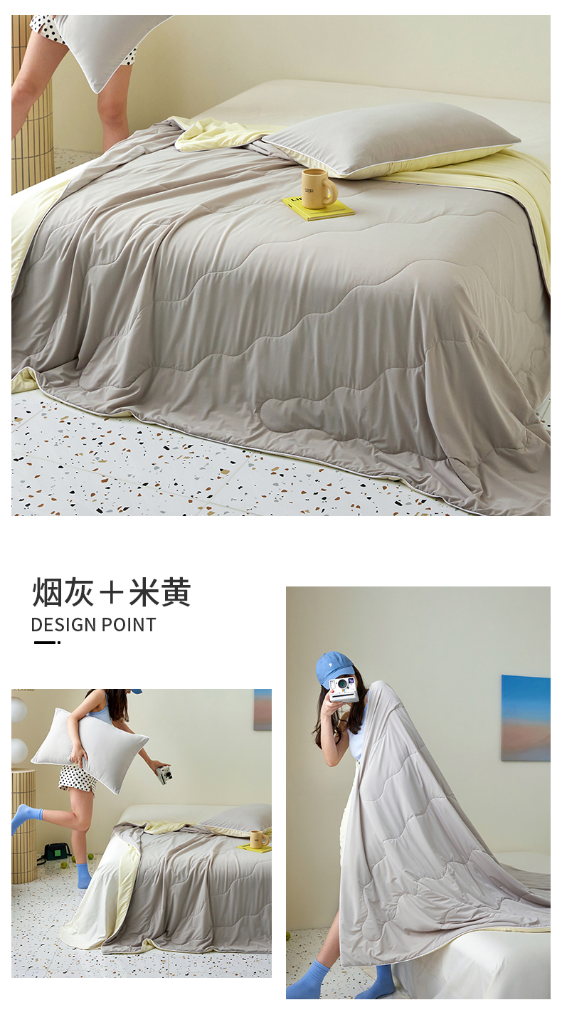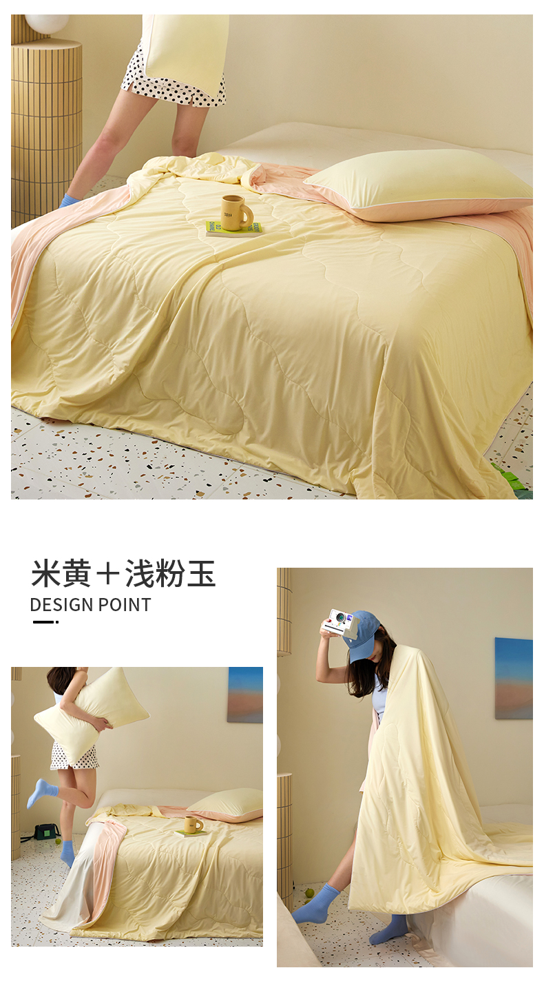 商品名称:(总)头等舱 2025新款锦氨凉感A类20大豆7A抗菌纯色空调被夏凉被夏被模特图(配礼盒)