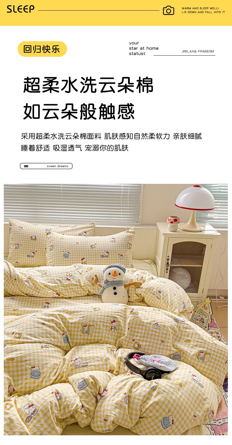 当前位置: 91家纺网 > 商品网购 > 床品套件 > 四件套 > 水洗棉四件套 > 奈颜 2025新款超柔水洗云朵棉爆款小清新印花四件套-面包猫咪 面包猫咪 奶黄