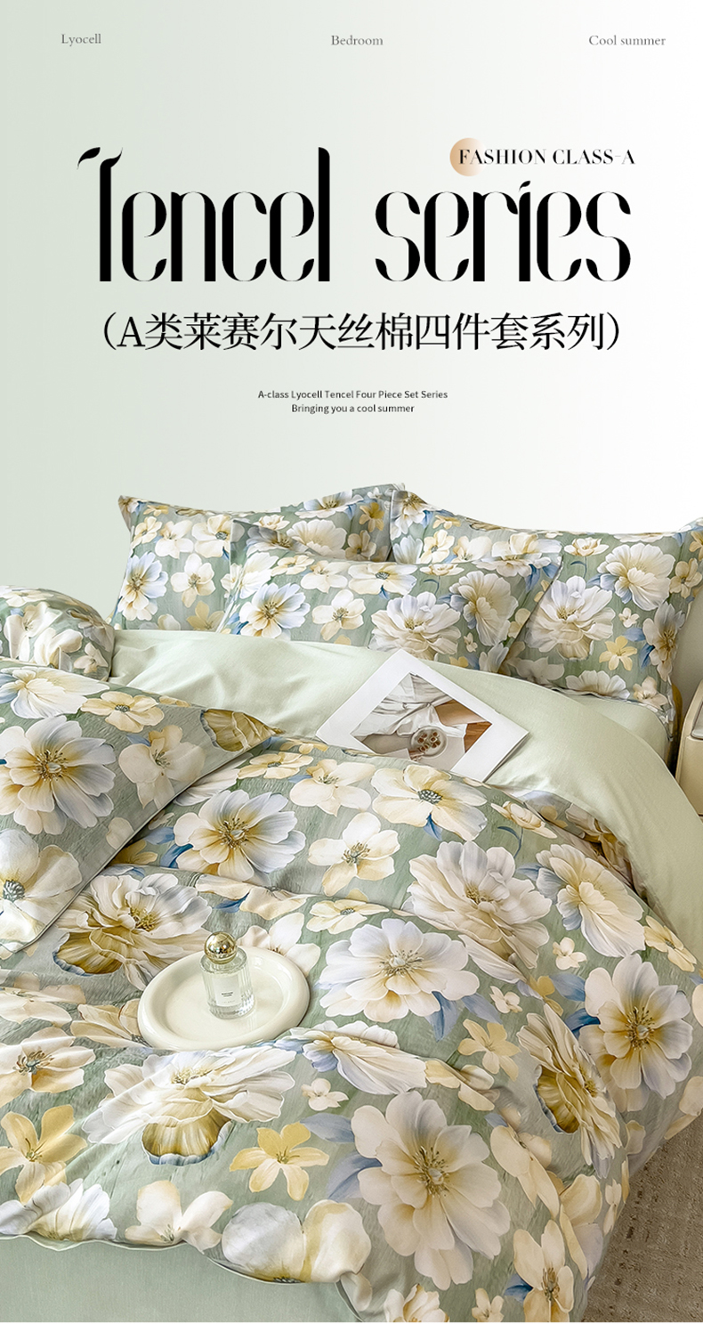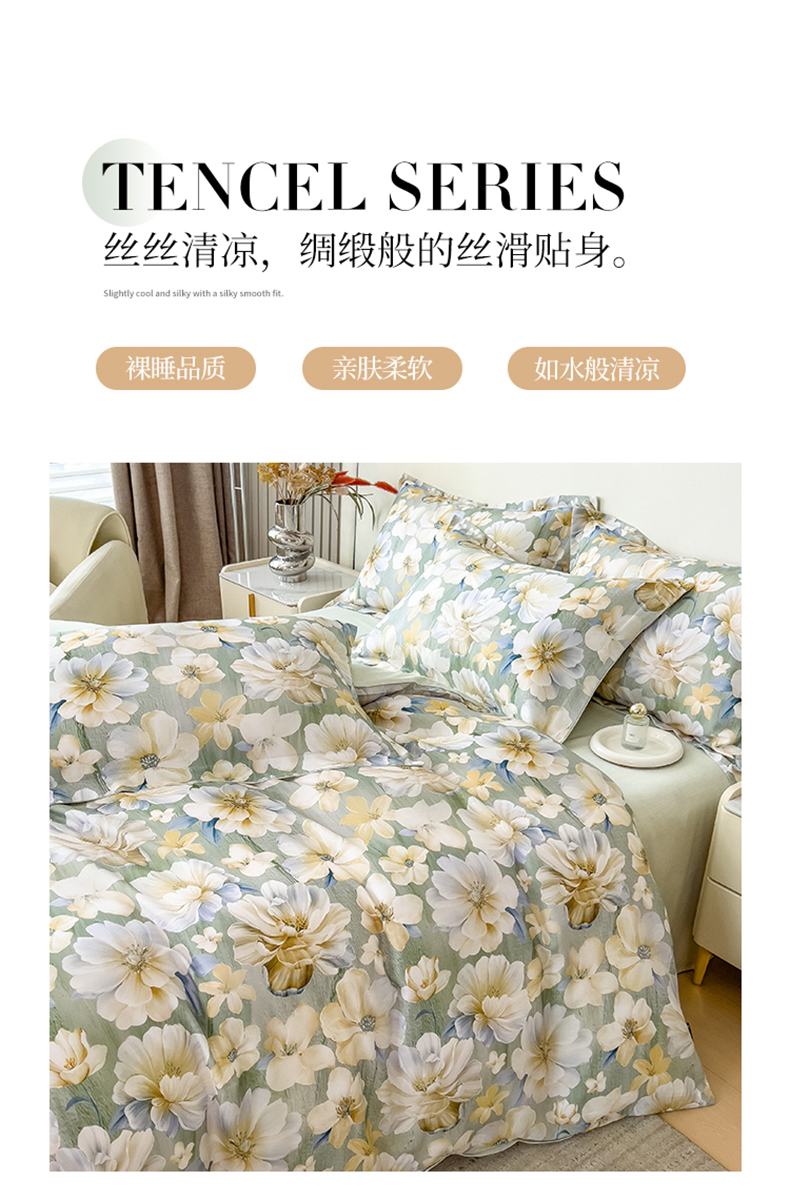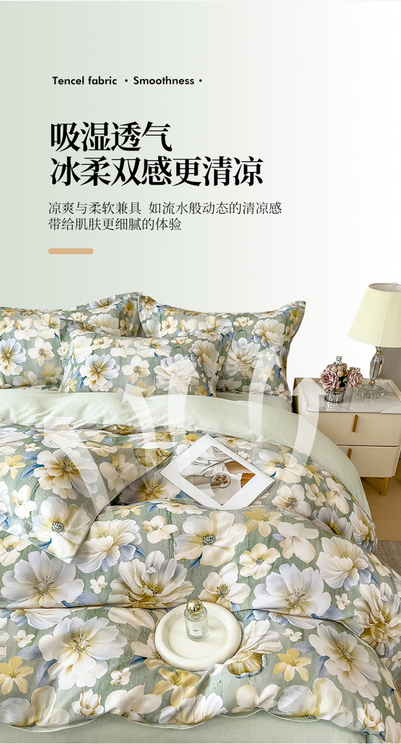 芃成家纺 2025新款A类莱赛尔天丝棉四件套 繁花满庭