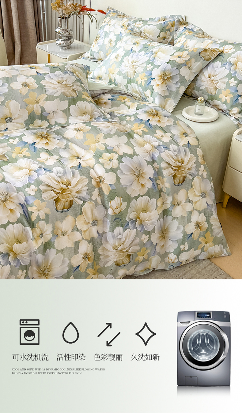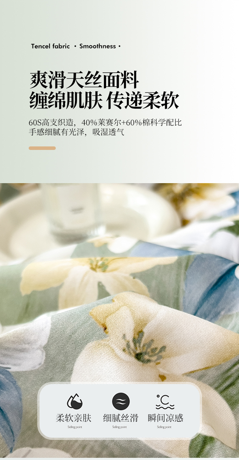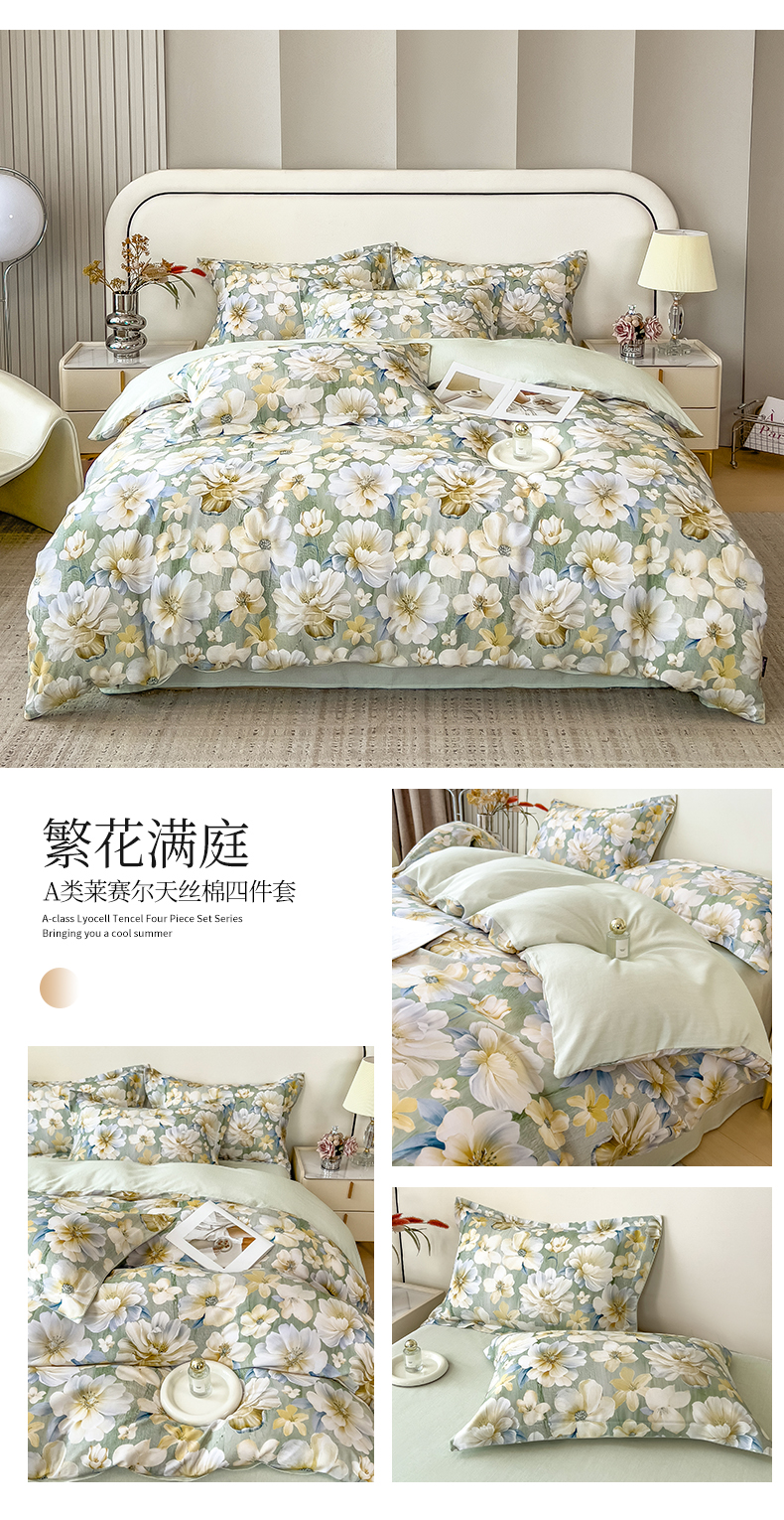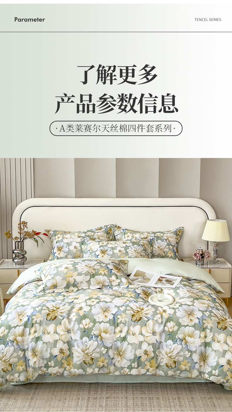 商品名称:芃成家纺 2025新款A类莱赛尔天丝棉四件套 繁花满庭