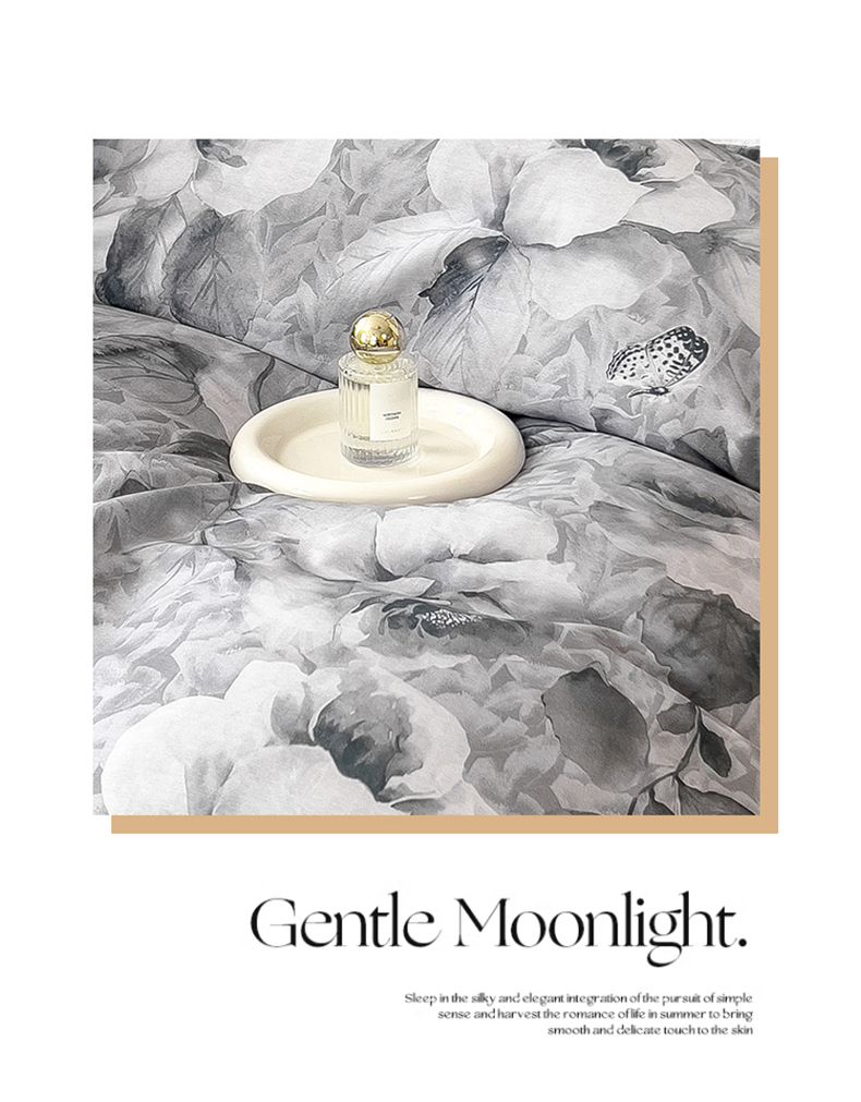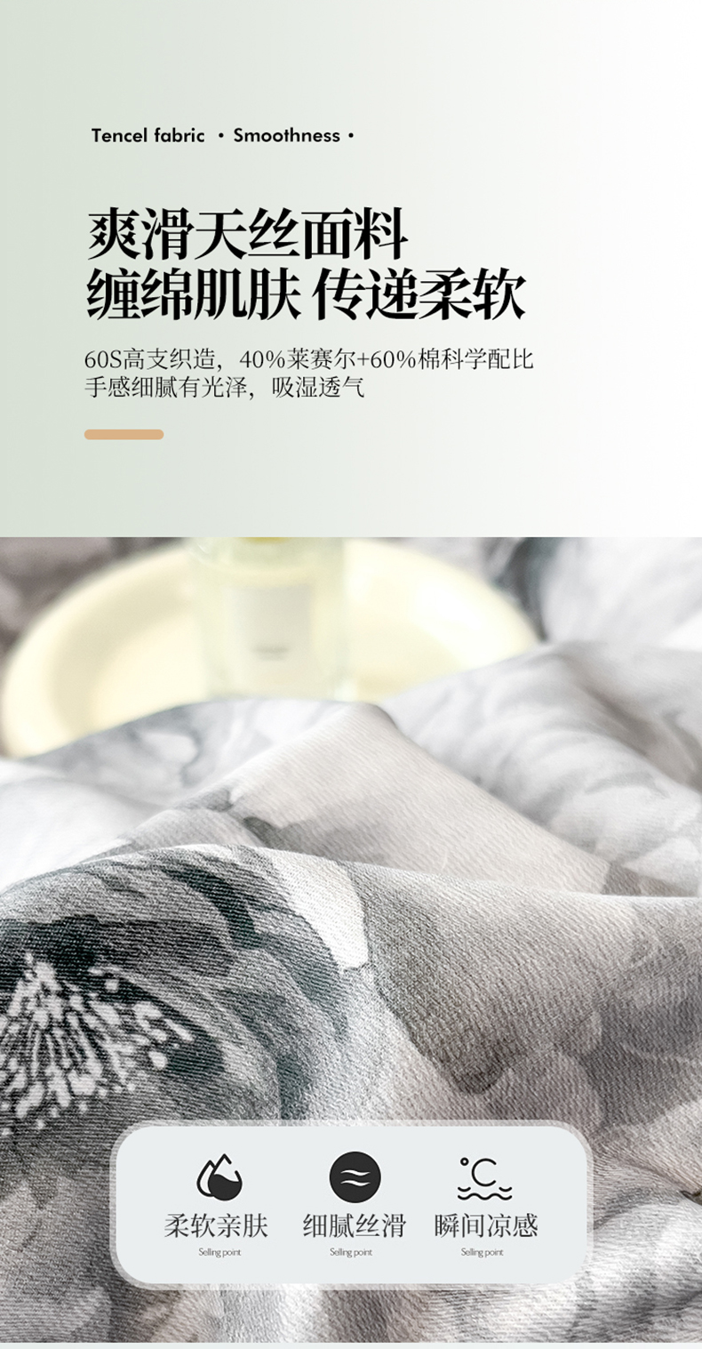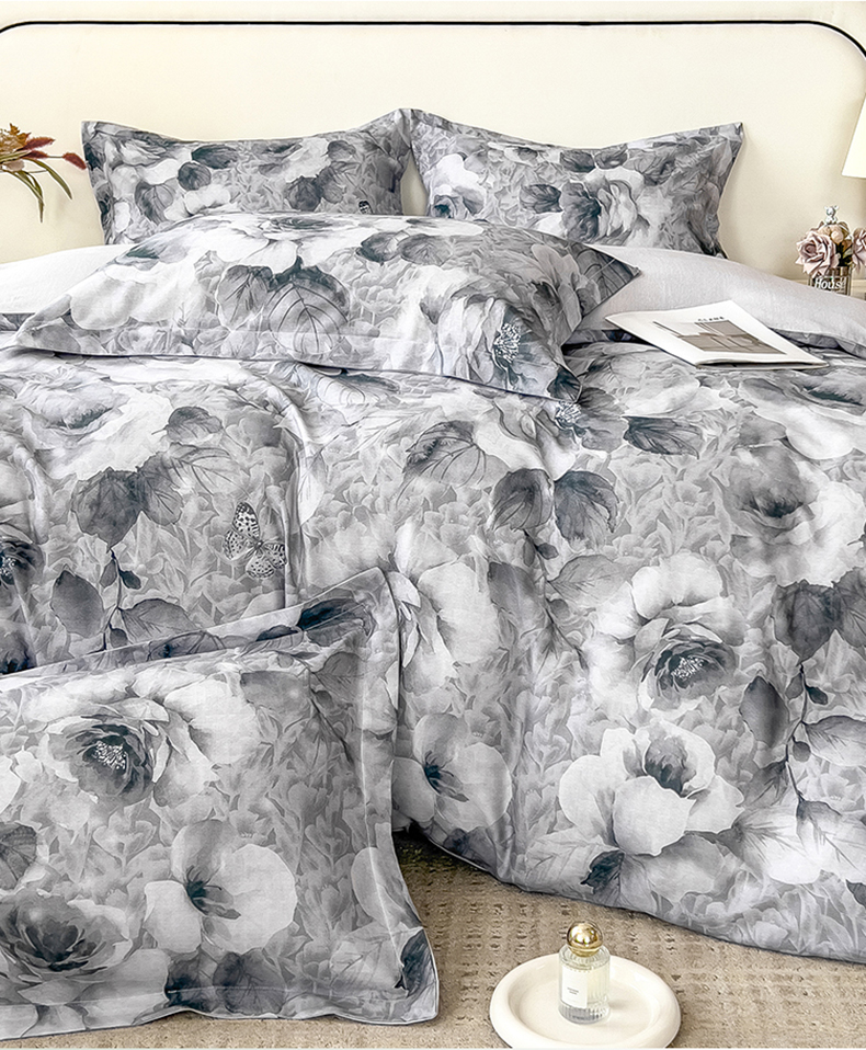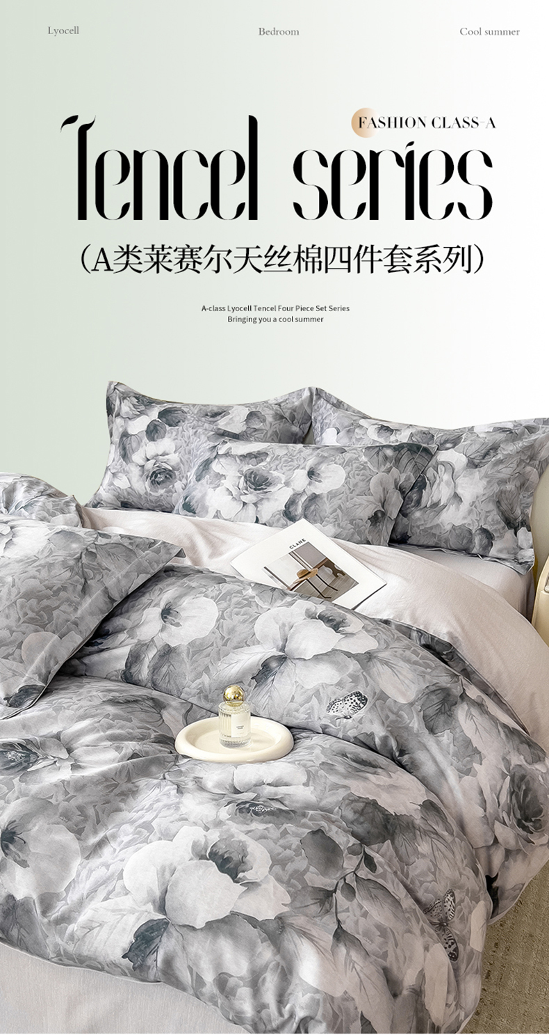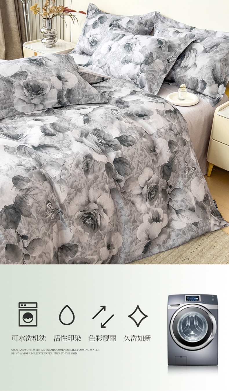 芃成家纺 2025新款A类莱赛尔天丝棉四件套 烟云牡丹