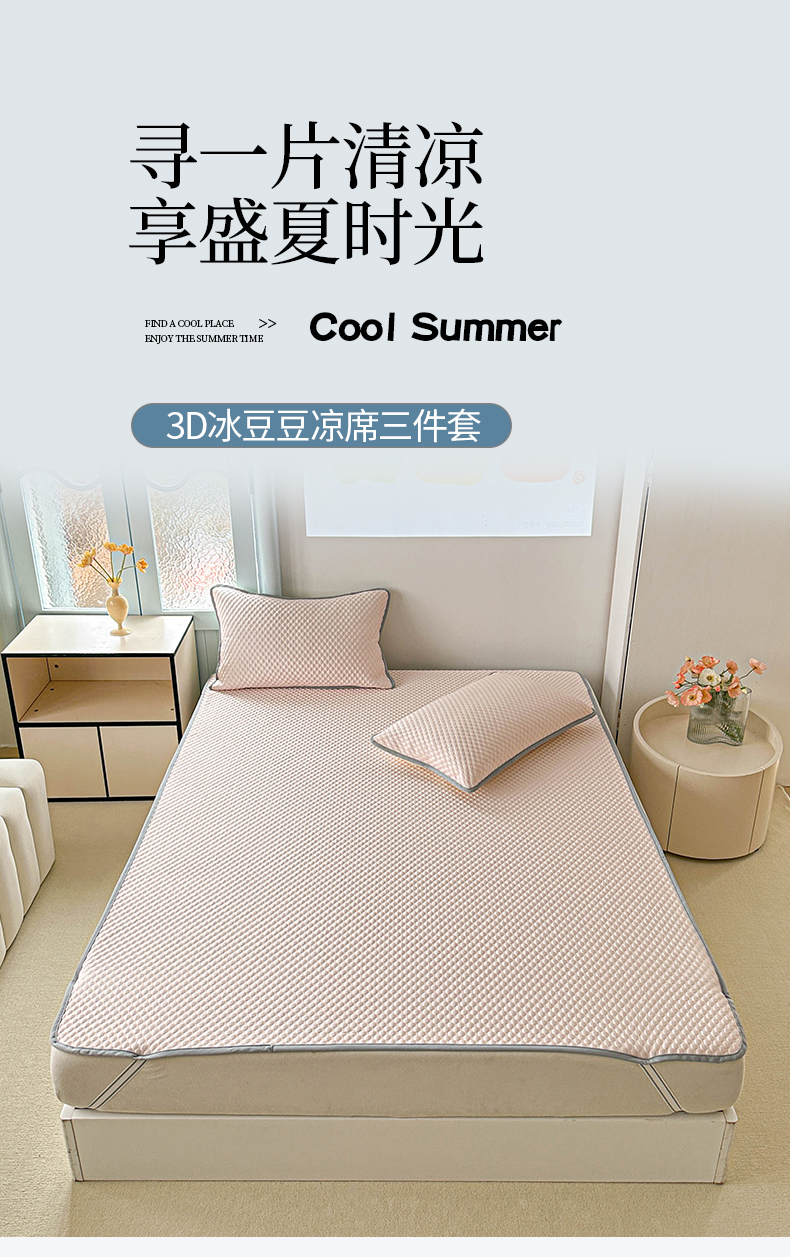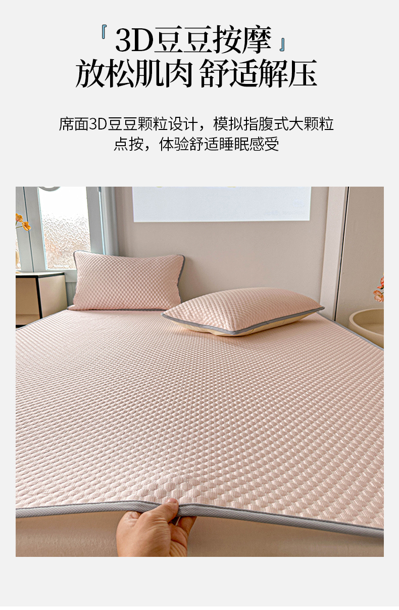 商品名称:枋梢家纺 2025新款简约高颜值凉豆豆凉席3D立体清新风冰豆豆软席 粉色