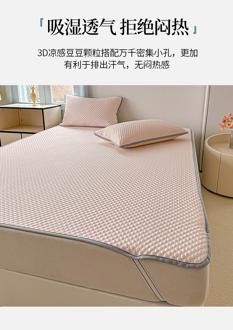 枋梢家纺 2025新款简约高颜值凉豆豆凉席3D立体清新风冰豆豆软席 粉色