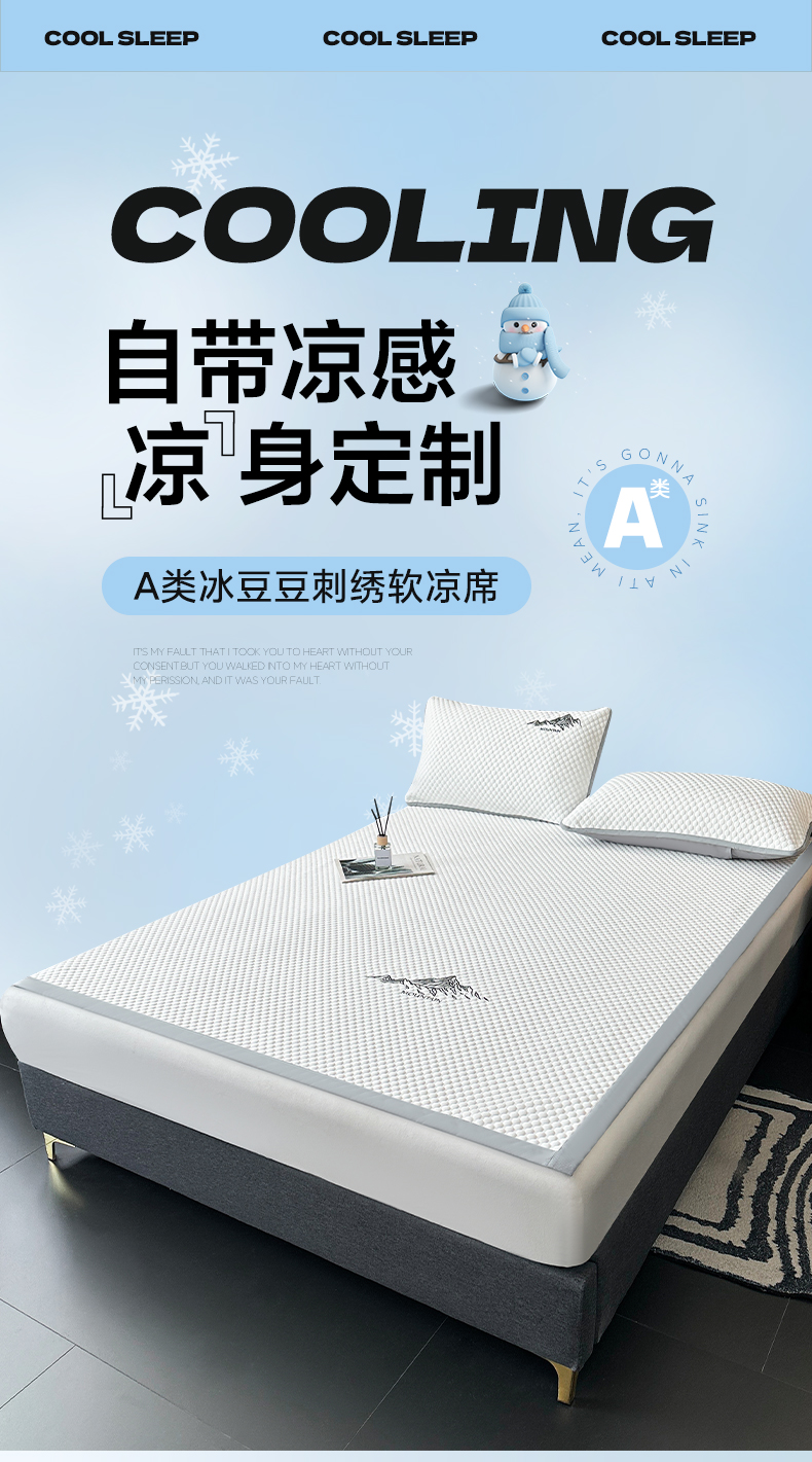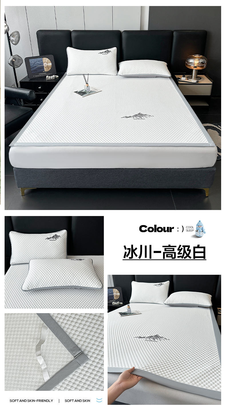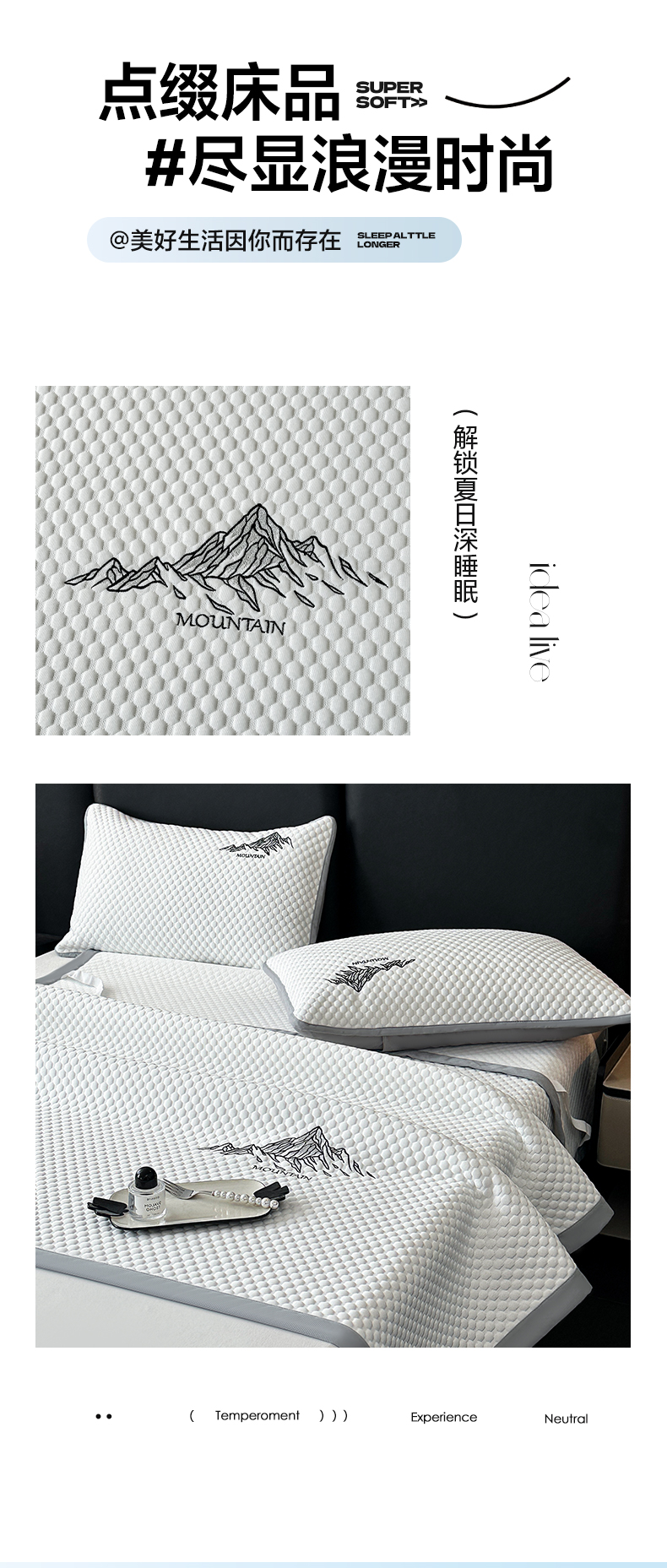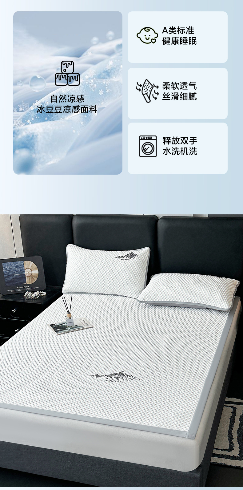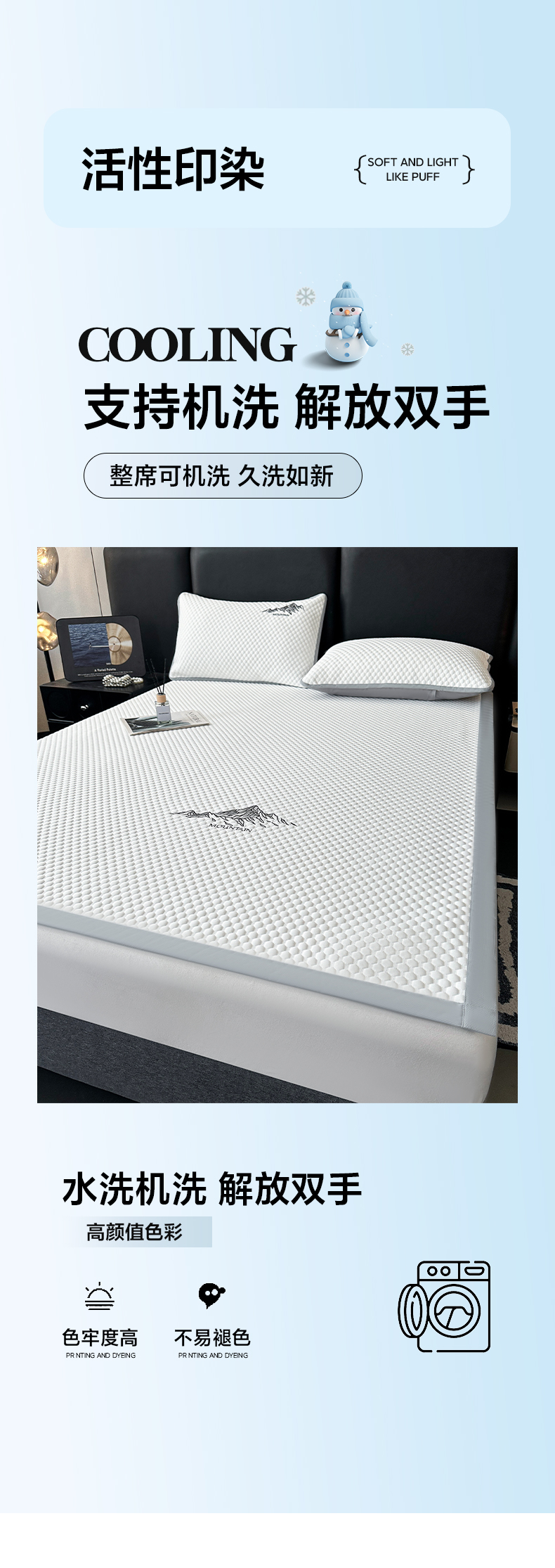 澳梵家居 2025新款PE中分子A类凉感豆豆刺绣软凉席 冰川-高级白