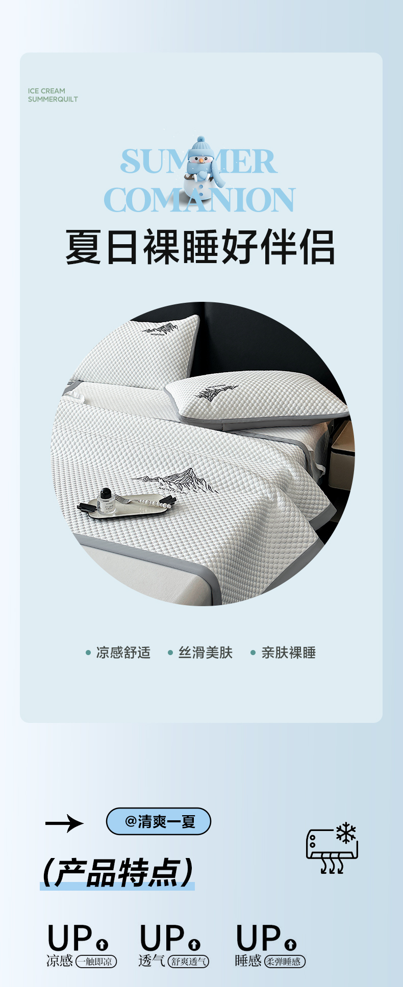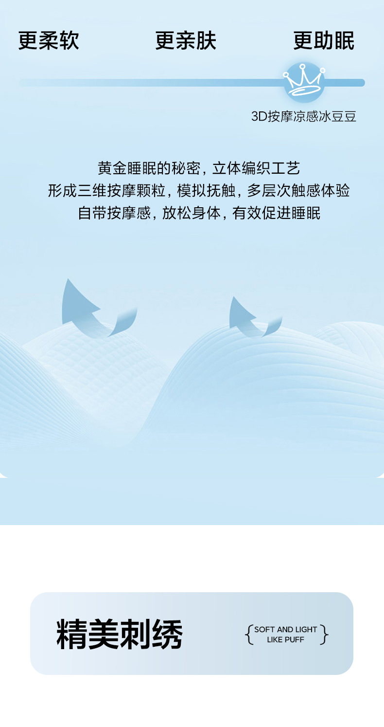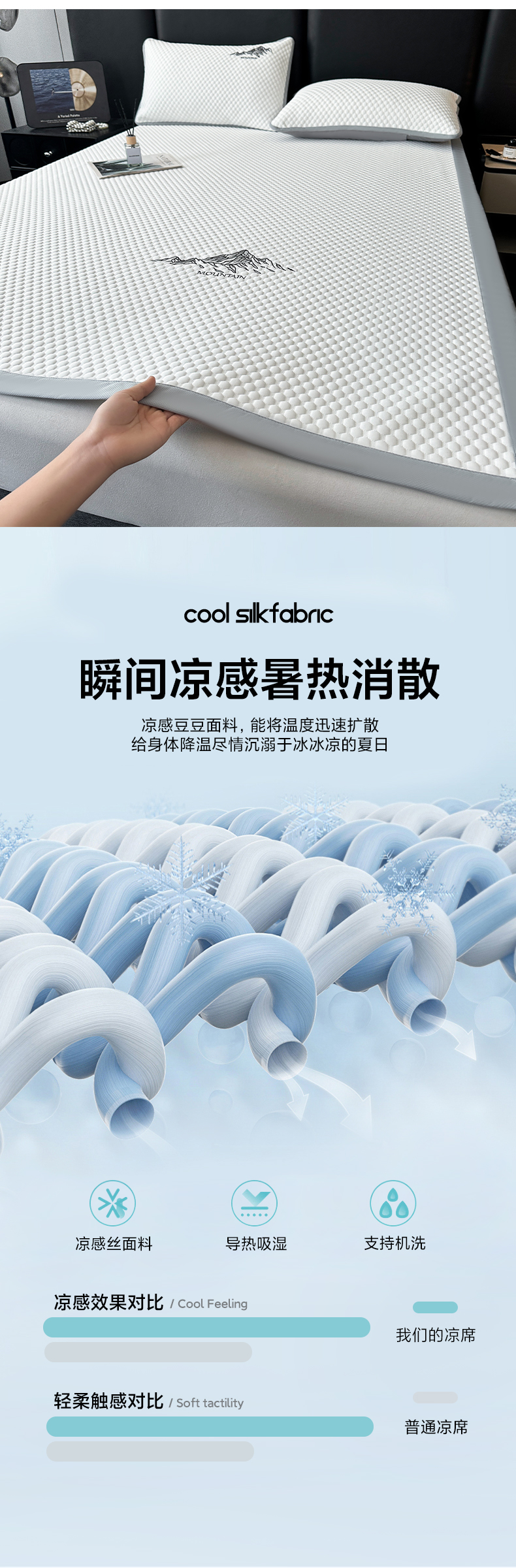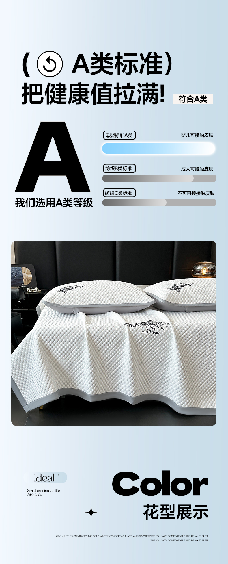 澳梵家居 2025新款PE中分子A类凉感豆豆刺绣软凉席 冰川-高级白