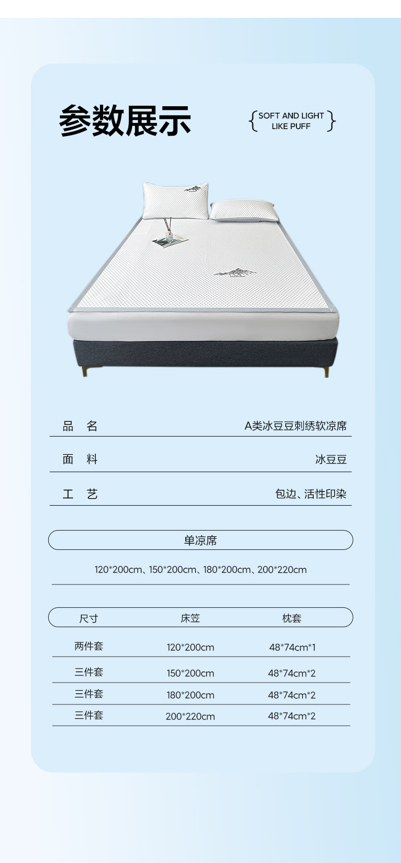 商品名称:澳梵家居 2025新款PE中分子A类凉感豆豆刺绣软凉席 冰川-高级白