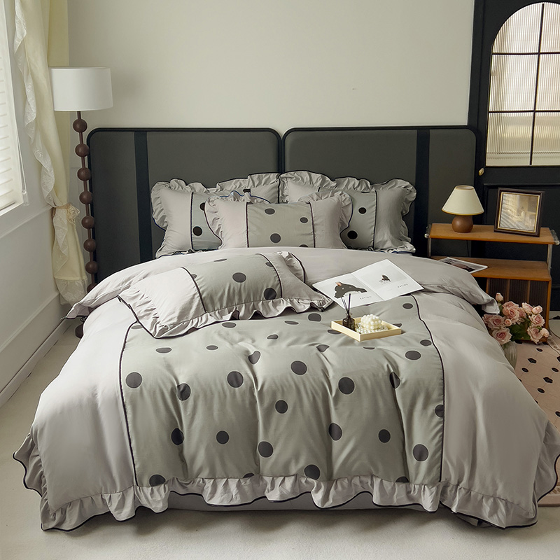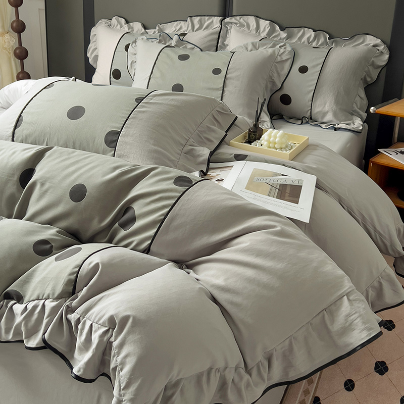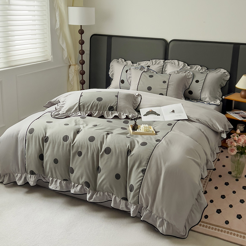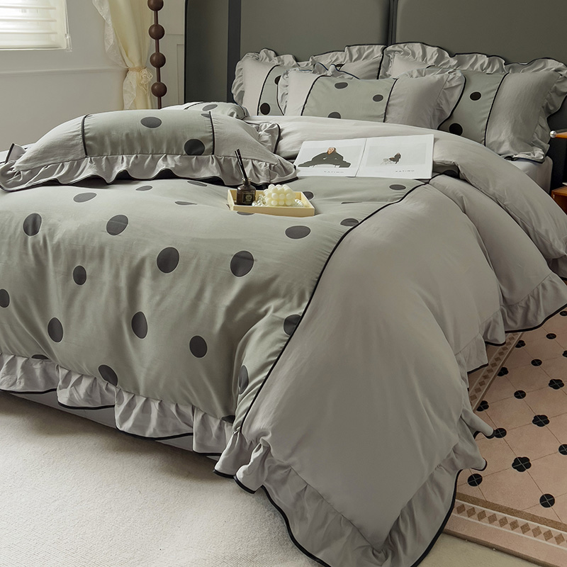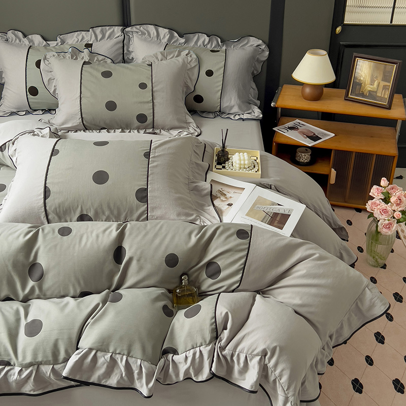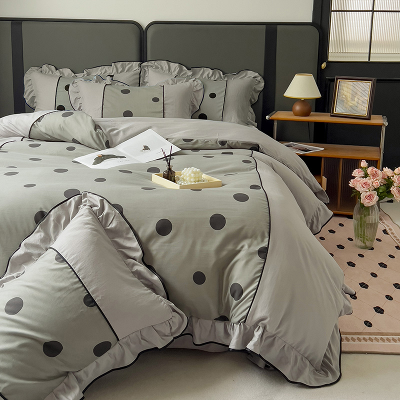 当前位置: 91家纺网 > 商品网购 > 床品套件 > 四件套 > 双层纱四件套 > 麦瑞家纺 2025新款A类针织棉双层纱法式浪漫花边四件套-Coco小姐系列 Coco小姐-爵士灰