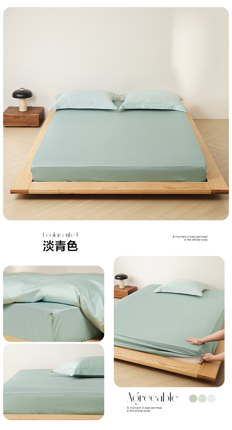 商品名称:EH家居2025新款50*50双股长绒棉纯棉系列床笠单件-单床笠 淡青色