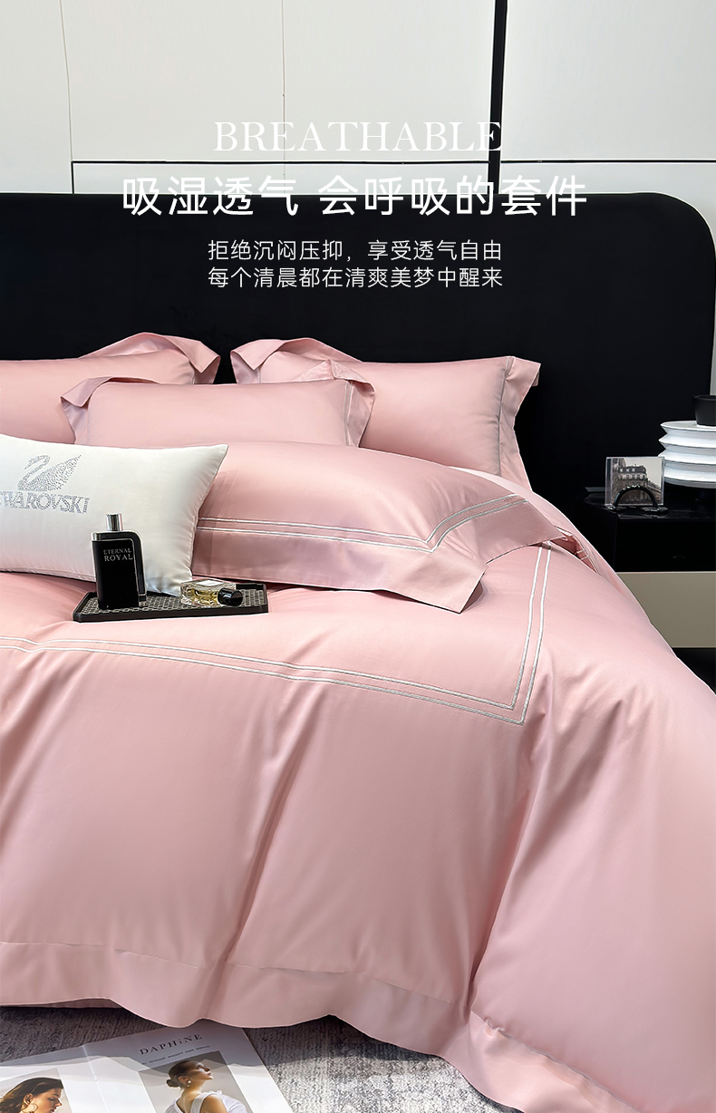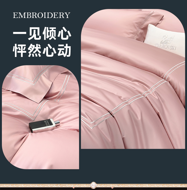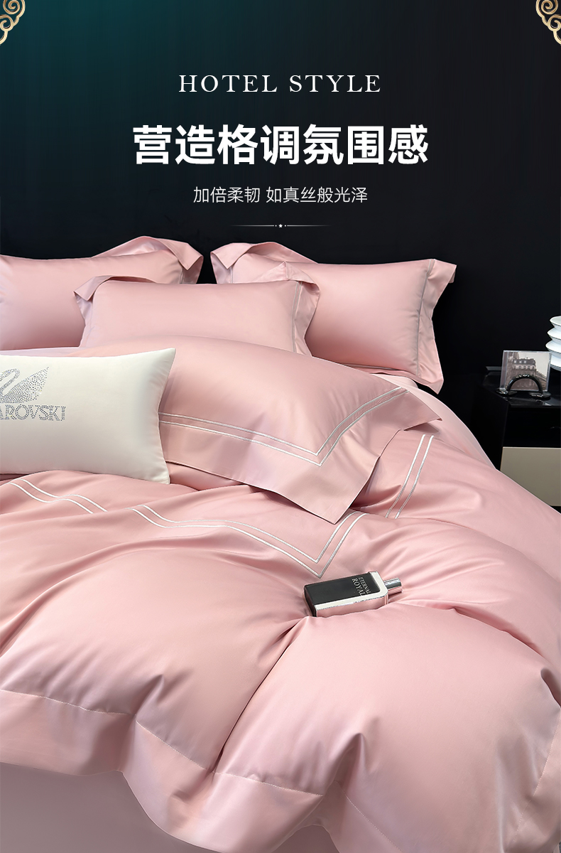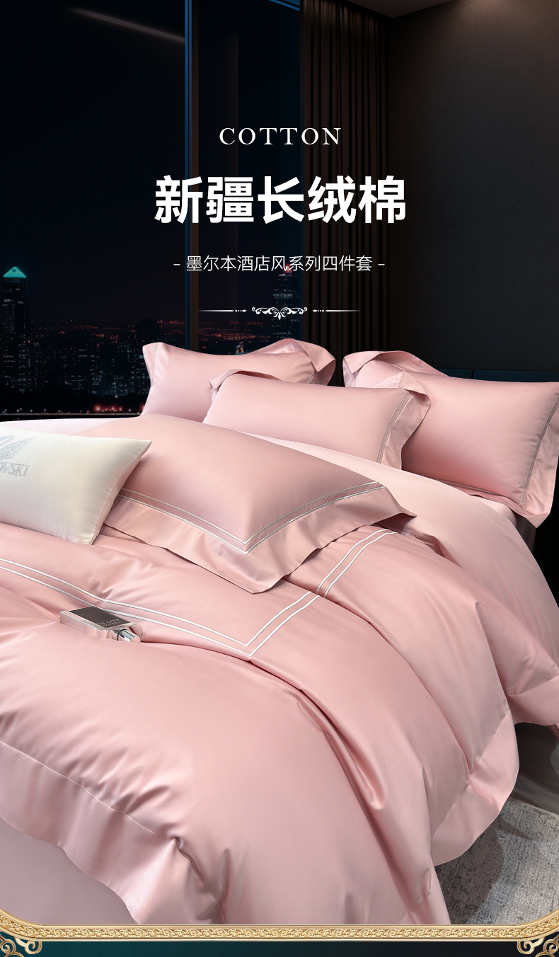 商品名称:家居1号家纺 2025新款七星级酒店风澳棉长绒棉刺绣四件套全棉纯棉床单被套名宿风床上用品可订制-墨尔本 墨尔本-粉豆沙