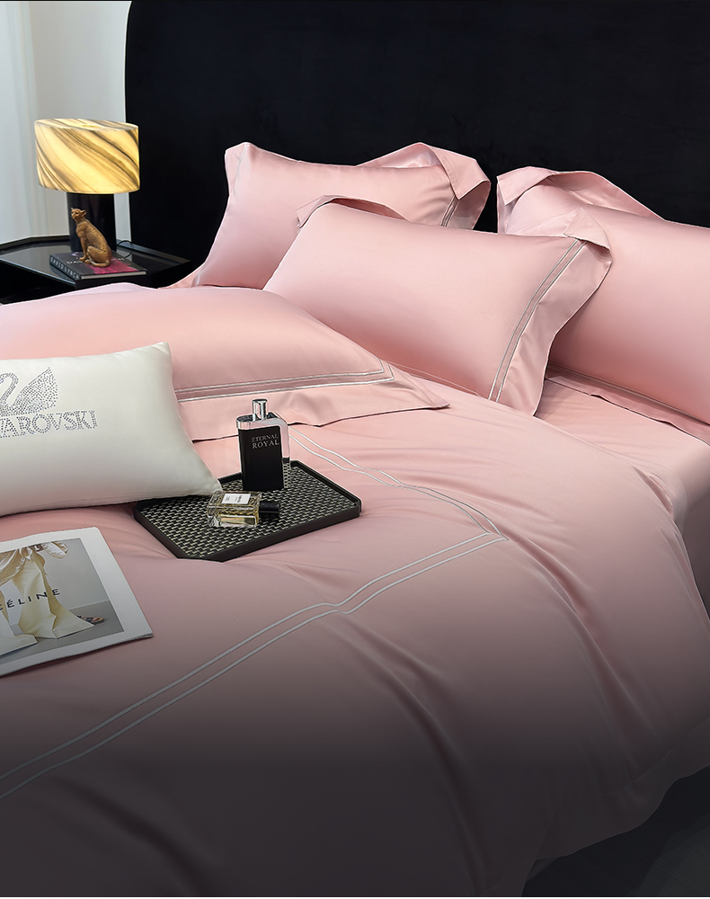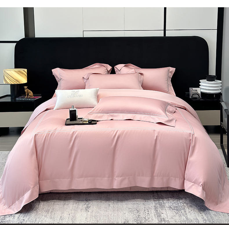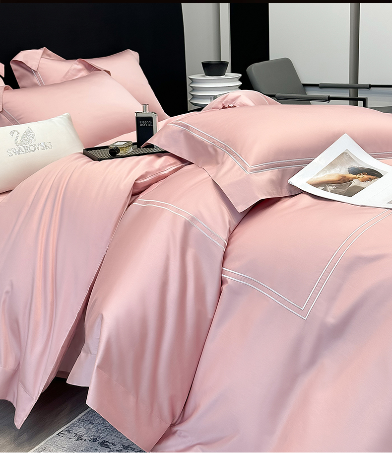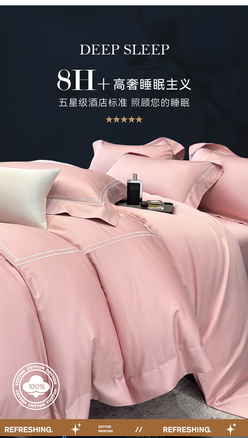 商品名称:家居1号家纺 2025新款七星级酒店风澳棉长绒棉刺绣四件套全棉纯棉床单被套名宿风床上用品可订制-墨尔本 墨尔本-粉豆沙