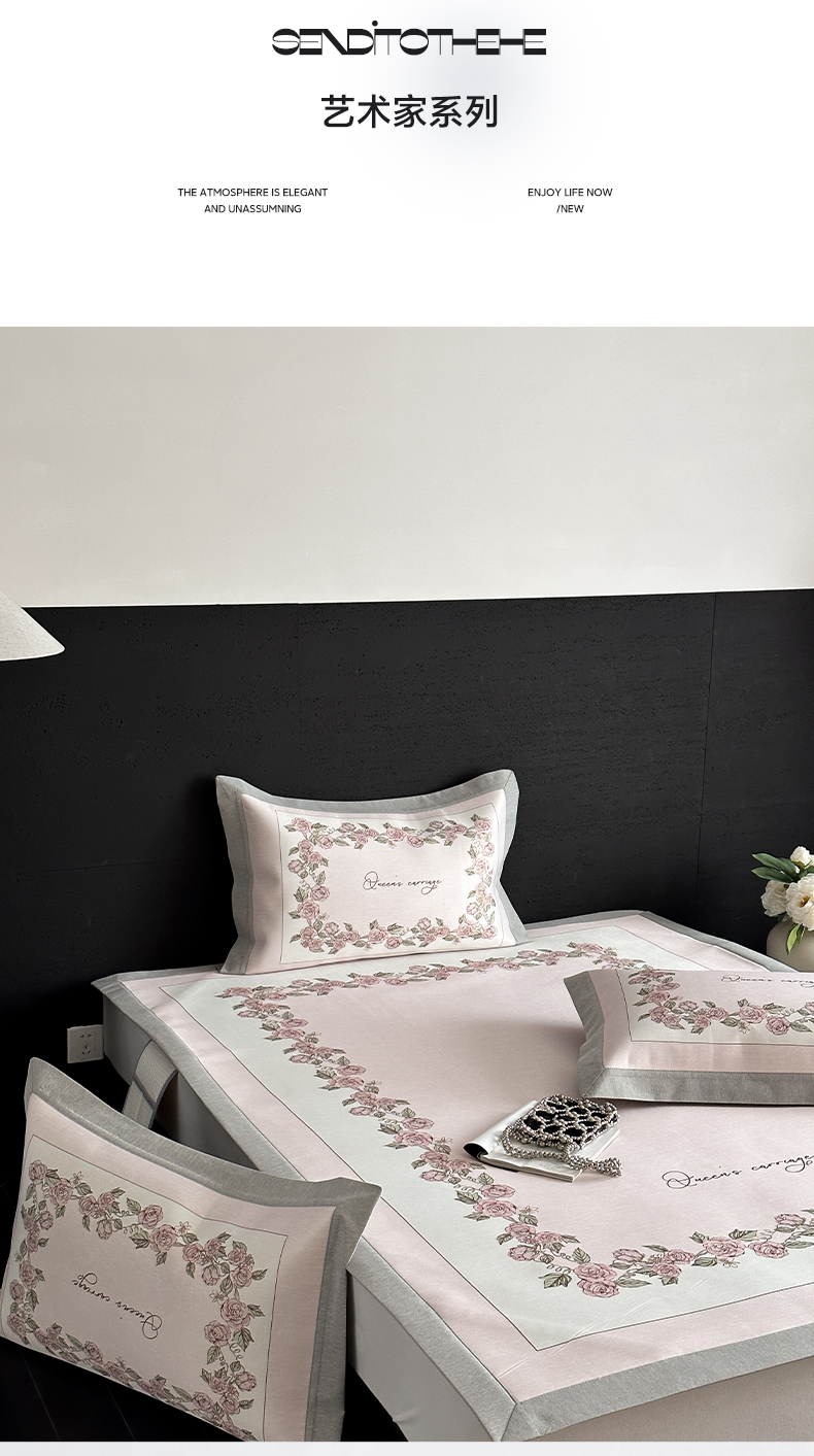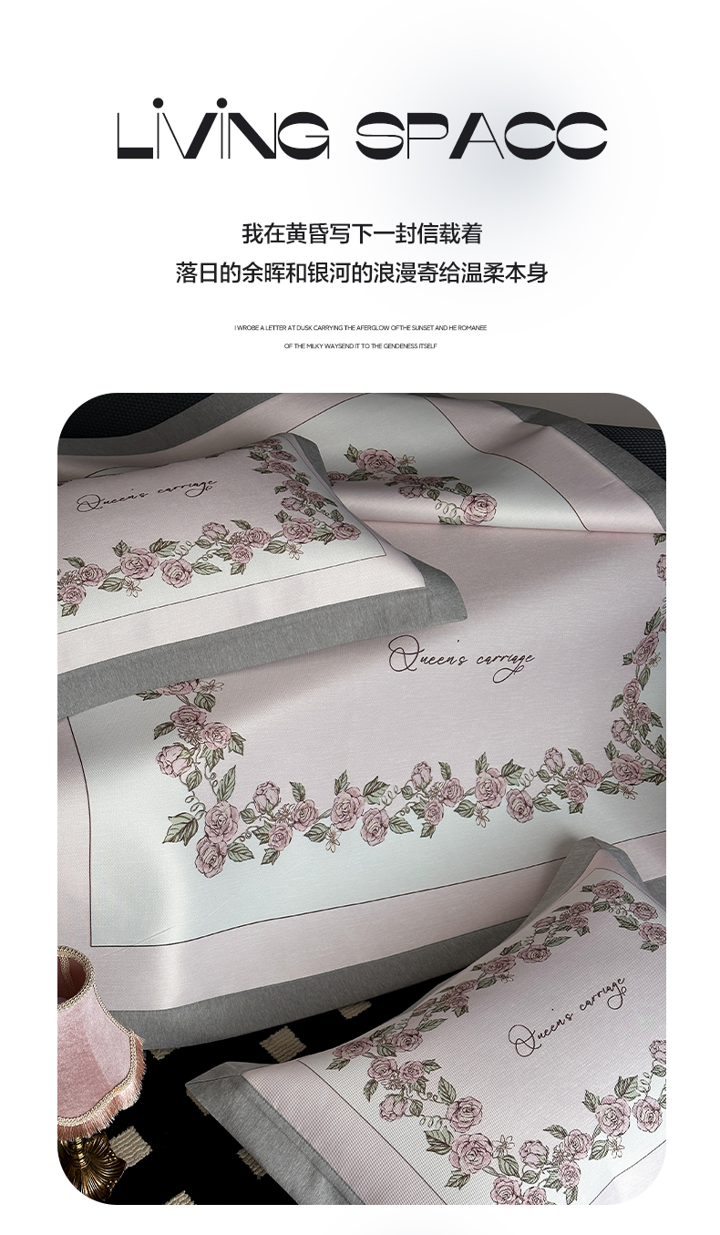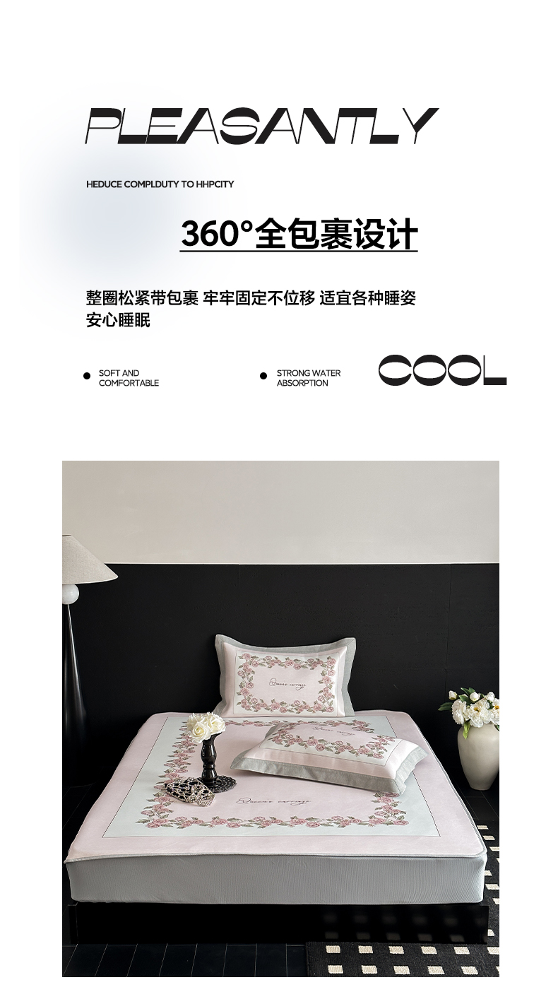 (总)三味舒屋 2025新款凉感抗菌南法恬谧系列大版数码印花冰丝床席-床笠