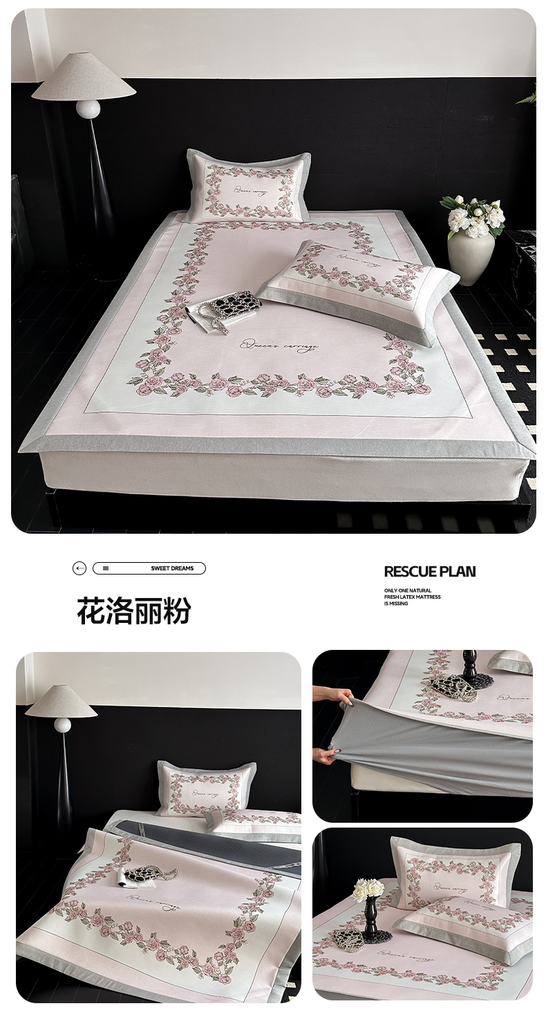 (总)三味舒屋 2025新款仲夏手札时尚印花冰藤凉席席子,仲夏手札米 床席,仲夏手札粉 床席,仲夏手札灰 床席,仲夏手札粉 床笠,仲夏手札灰 床笠,仲夏手札米 床笠
