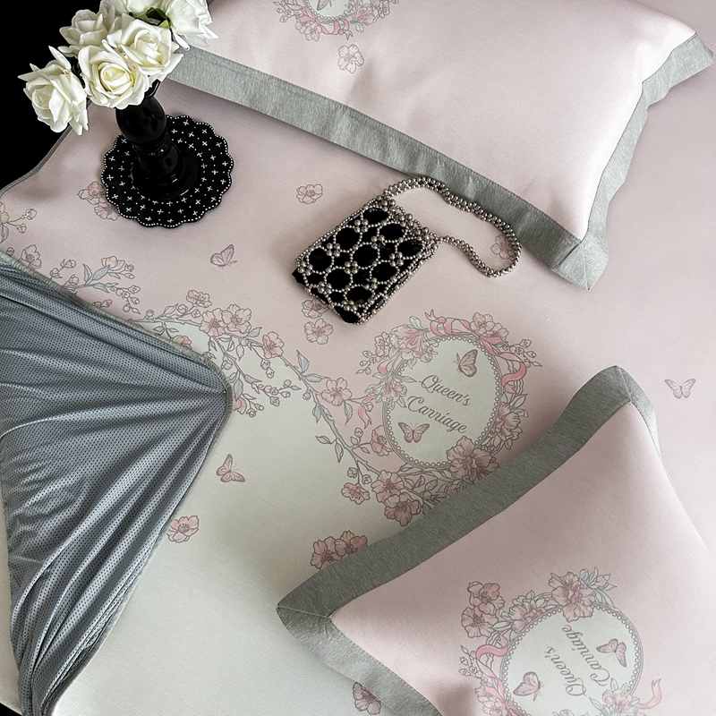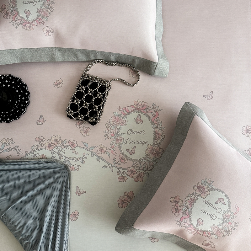 商品名称:三味舒屋 2025新款凉感抗菌南法恬谧系列大版数码印花冰丝床席-床笠 曼塔粉-床笠款