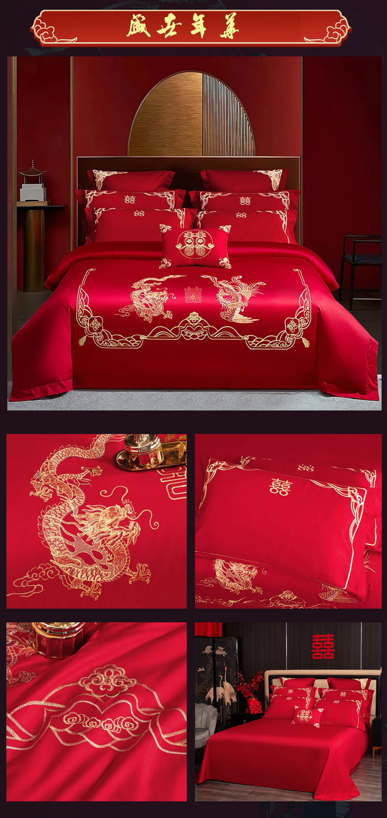 商品名称:(总)2025新款喷气全棉13376纯棉刺绣花婚庆四件套/大红婚庆床上用品高档新中式