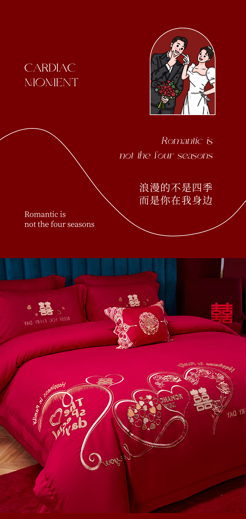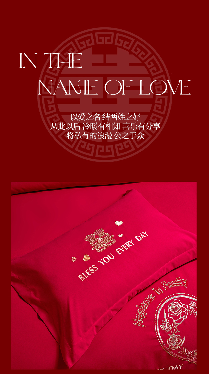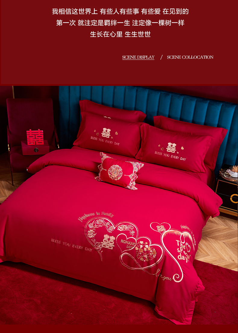 商品名称:晶缦家纺 2025新款喷气全棉13376婚庆绣花四件套 永结同心