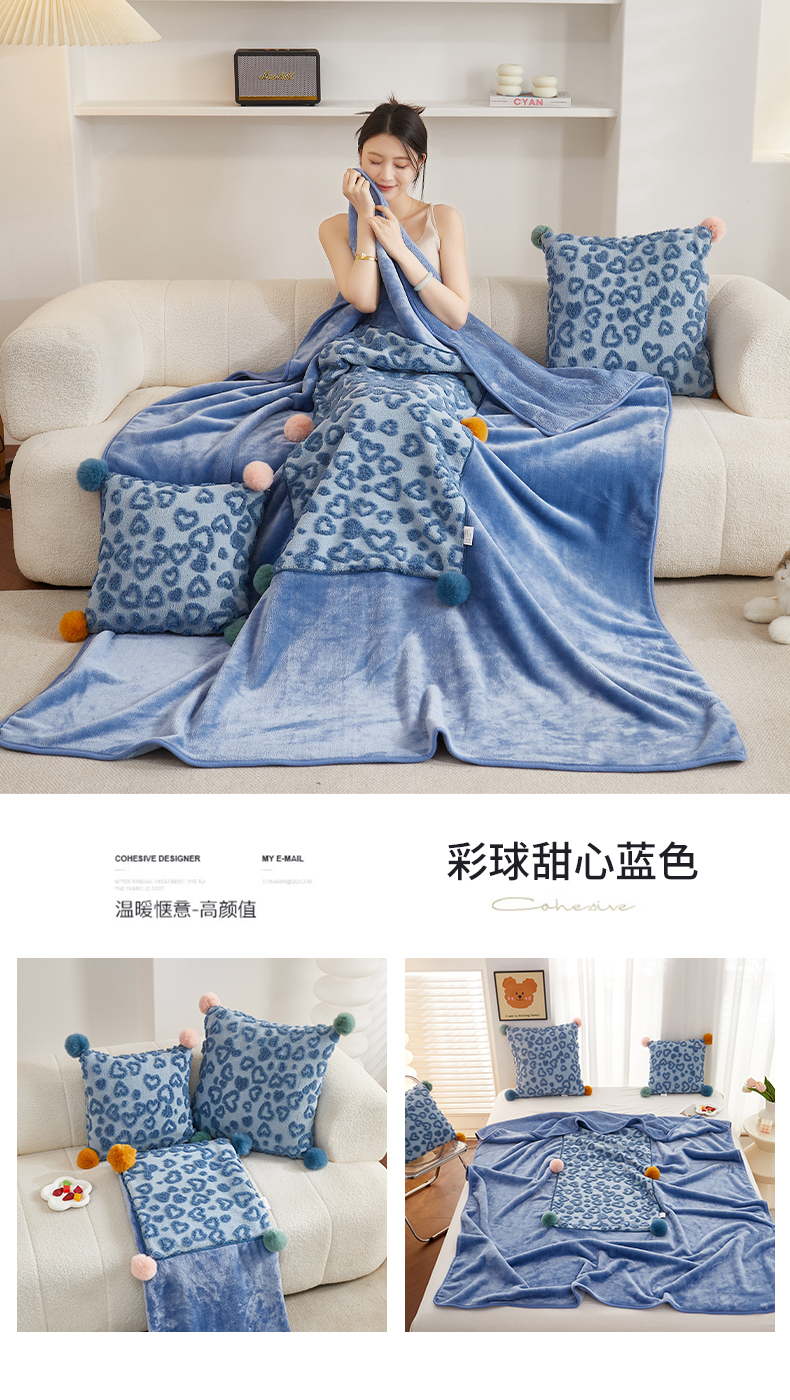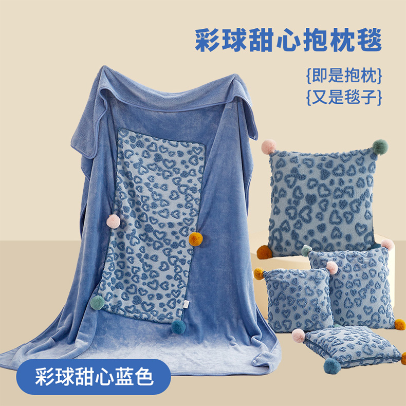 商品名称:古本家居 2025新款彩球甜心抱枕毯 彩球甜心蓝色