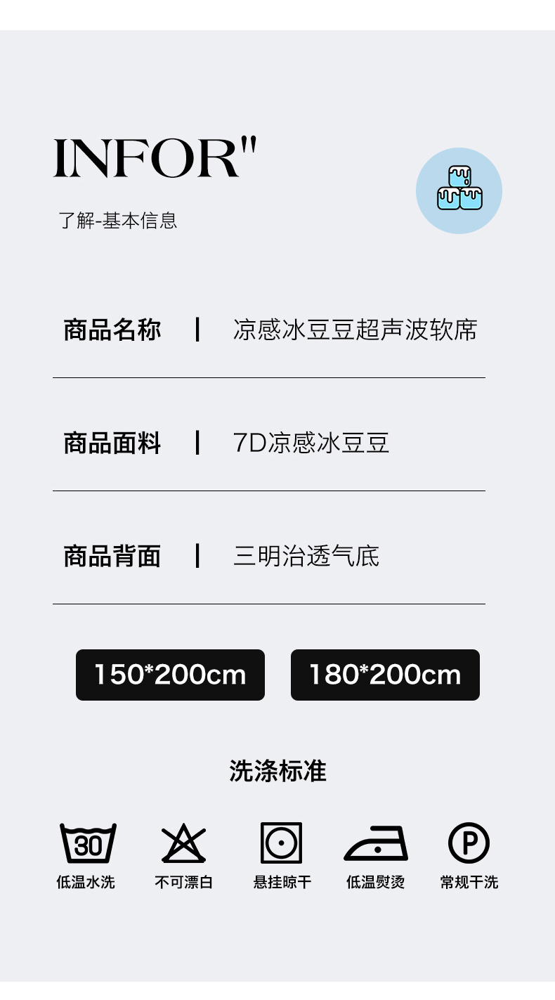 商品名称:亿梵家居 2025新款PE中分子480克高克重冰豆豆席凉豆豆席凉感凉席 莫里斯-豆沙