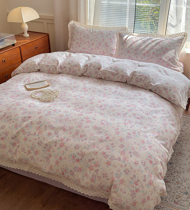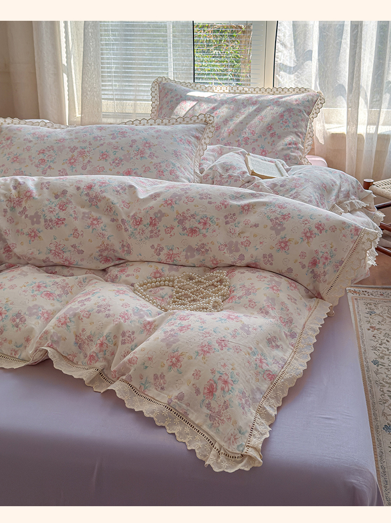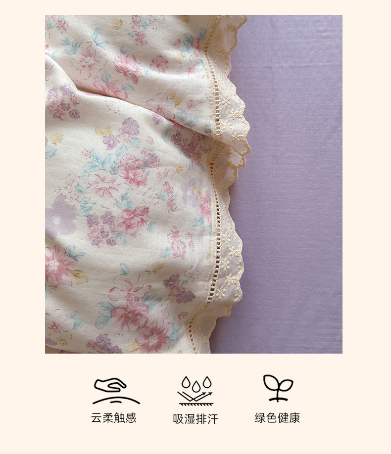 商品名称:曼之夏 2025新款A类全棉双层纱花边四件套 丽莎