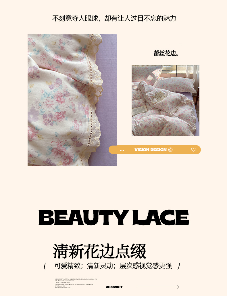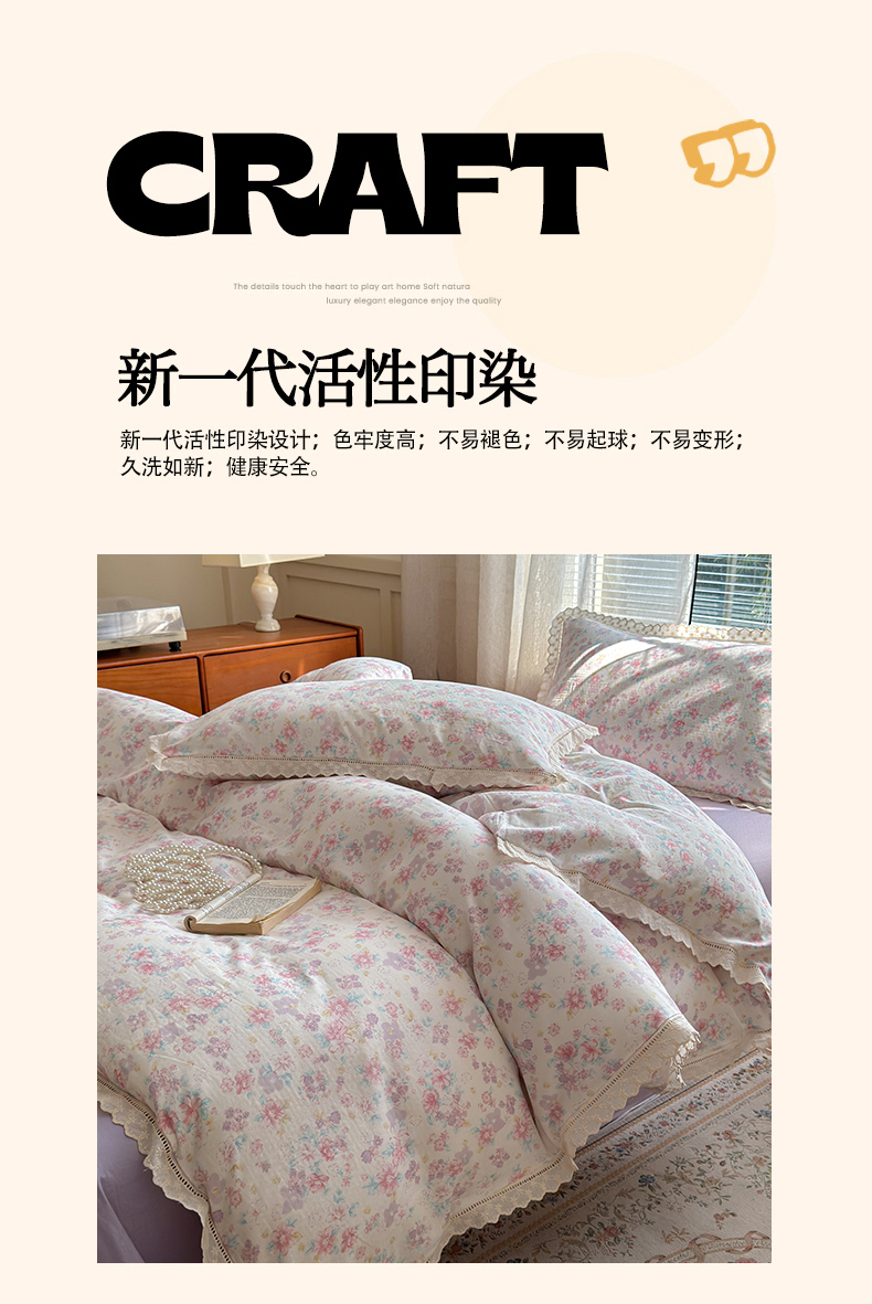 (总)曼之夏 2025新款A类全棉双层纱花边四件套,春风里,恩彩,观夏,丽莎,洛神玫瑰,茉莉,如梦令,苏打绿,晚香玉,郁金香