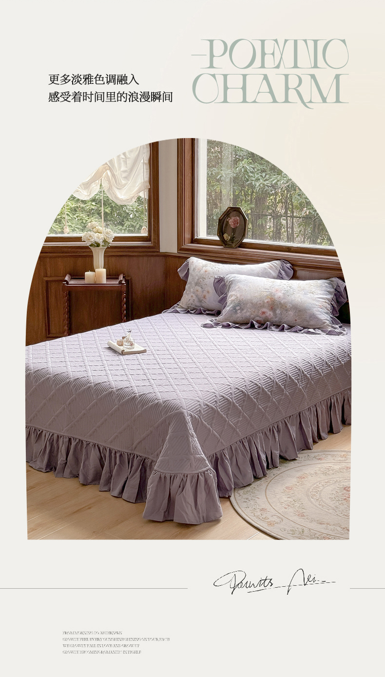 (总)胜权家纺 2025秋冬新款A类全消光高克重5D雕花牛奶绒仙女风夹棉床盖单品系列,梦安娜-湖蓝,梦安娜-靓紫,梦安娜-嫩粉,梦安娜-浅米