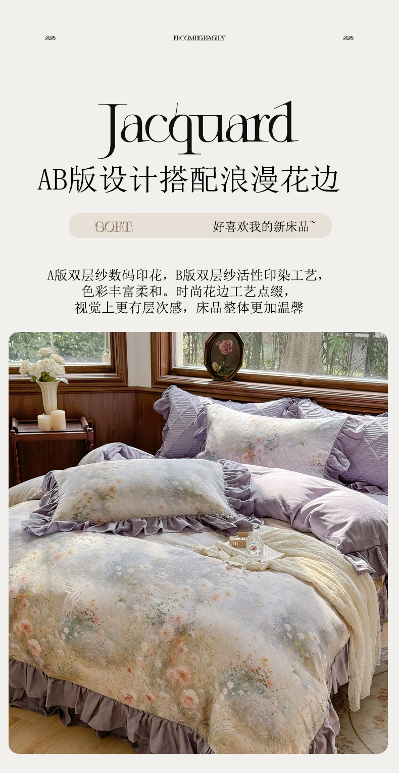(总)胜权家纺 2025秋冬新款全棉法式13372数码印花夹棉床盖四件套系列,花非花粉,花非花绿,花海绿,锦绣繁华粉,锦绣繁华绿,妙颜粉