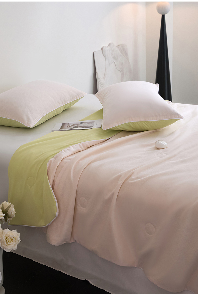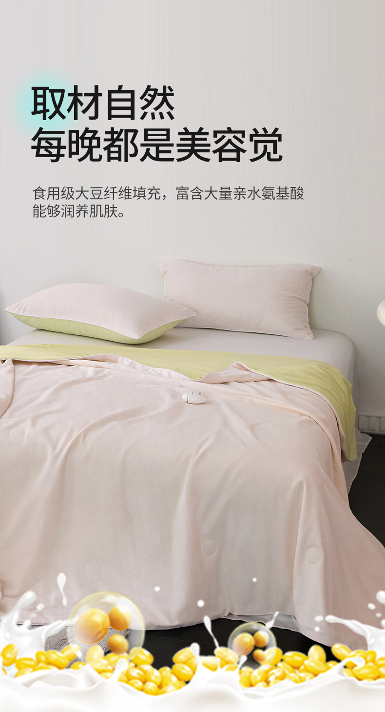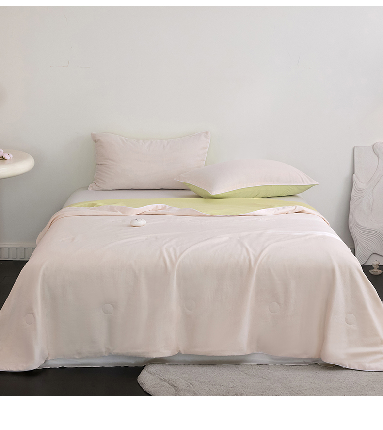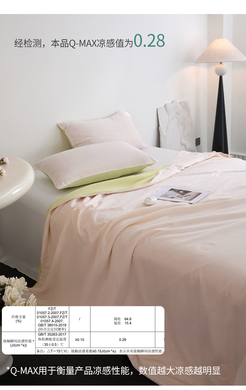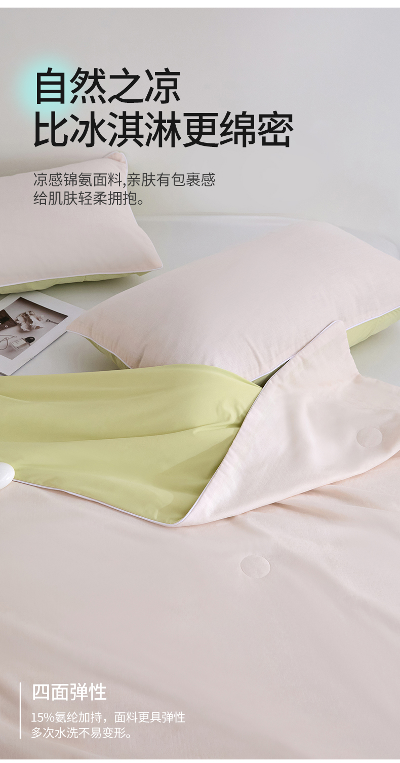商品名称:头等舱 2025新款锦氨&全棉双层纱一被两用A类20大豆7A抗菌夏被(配礼盒) 奶白明绿