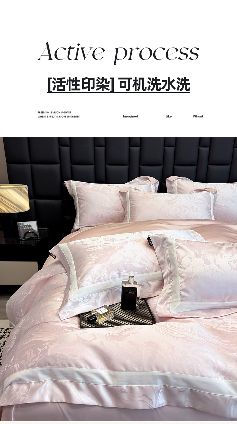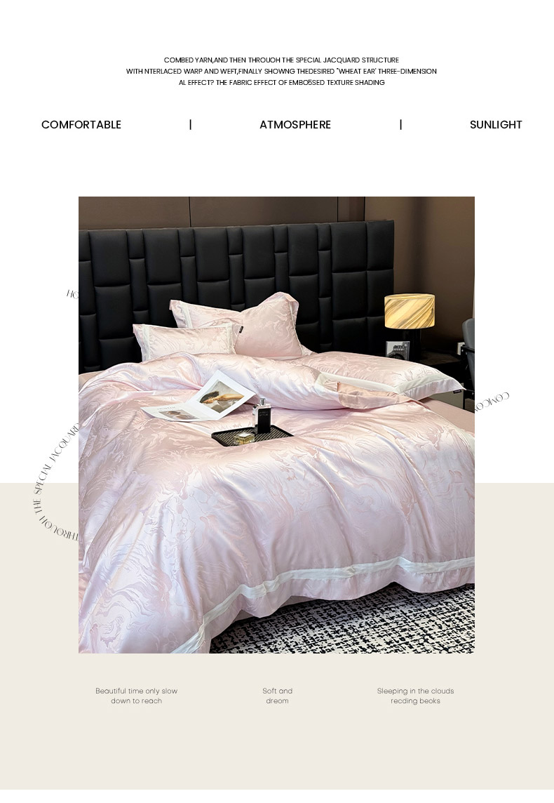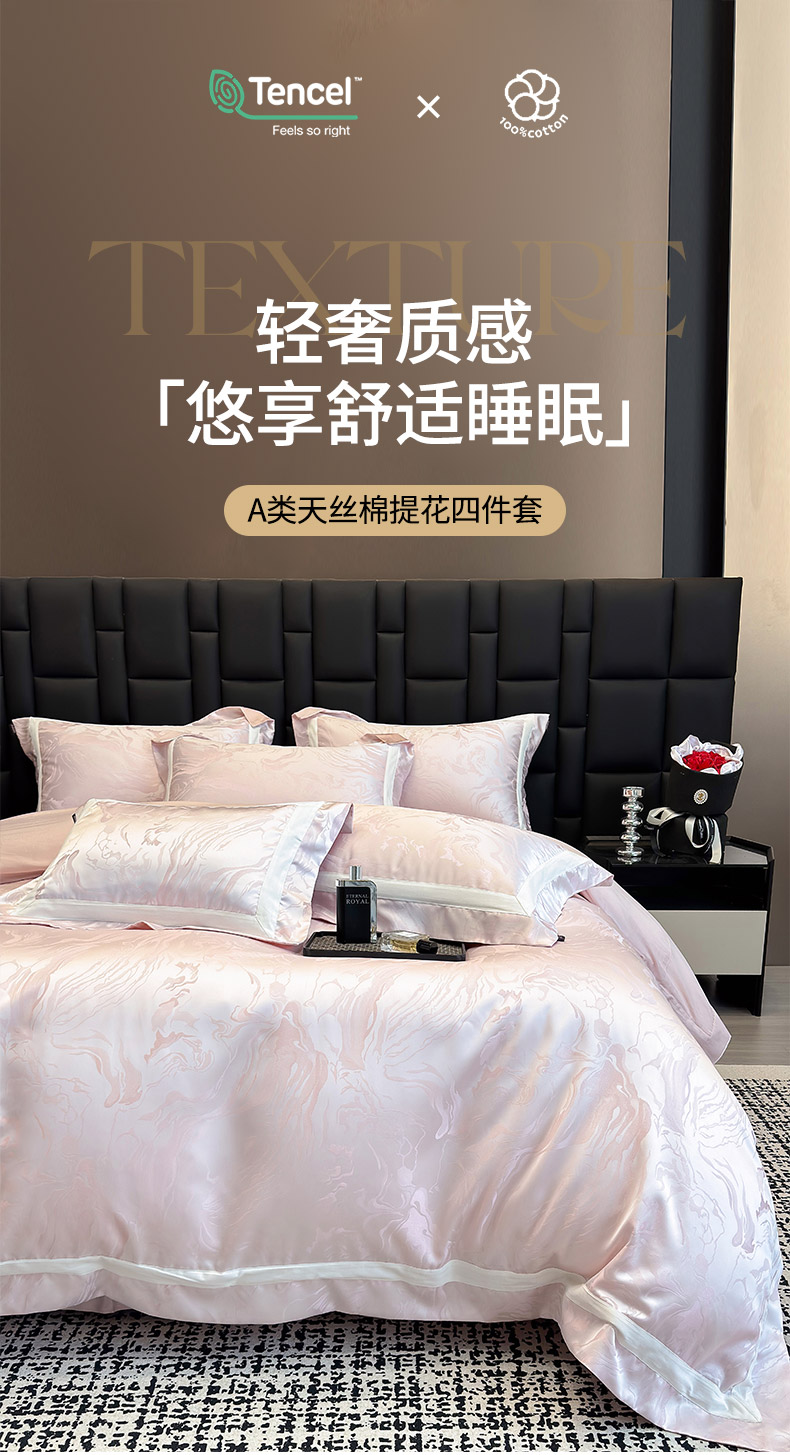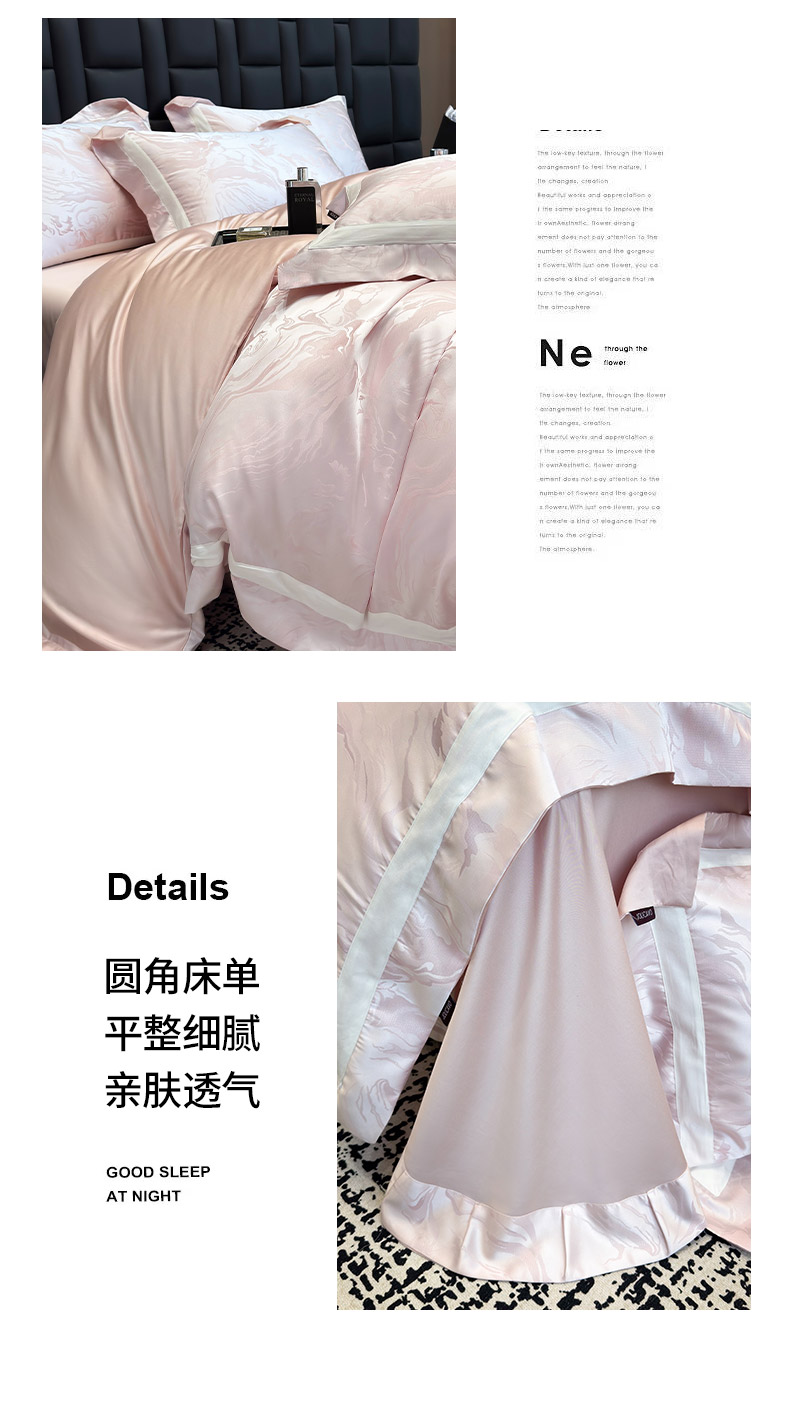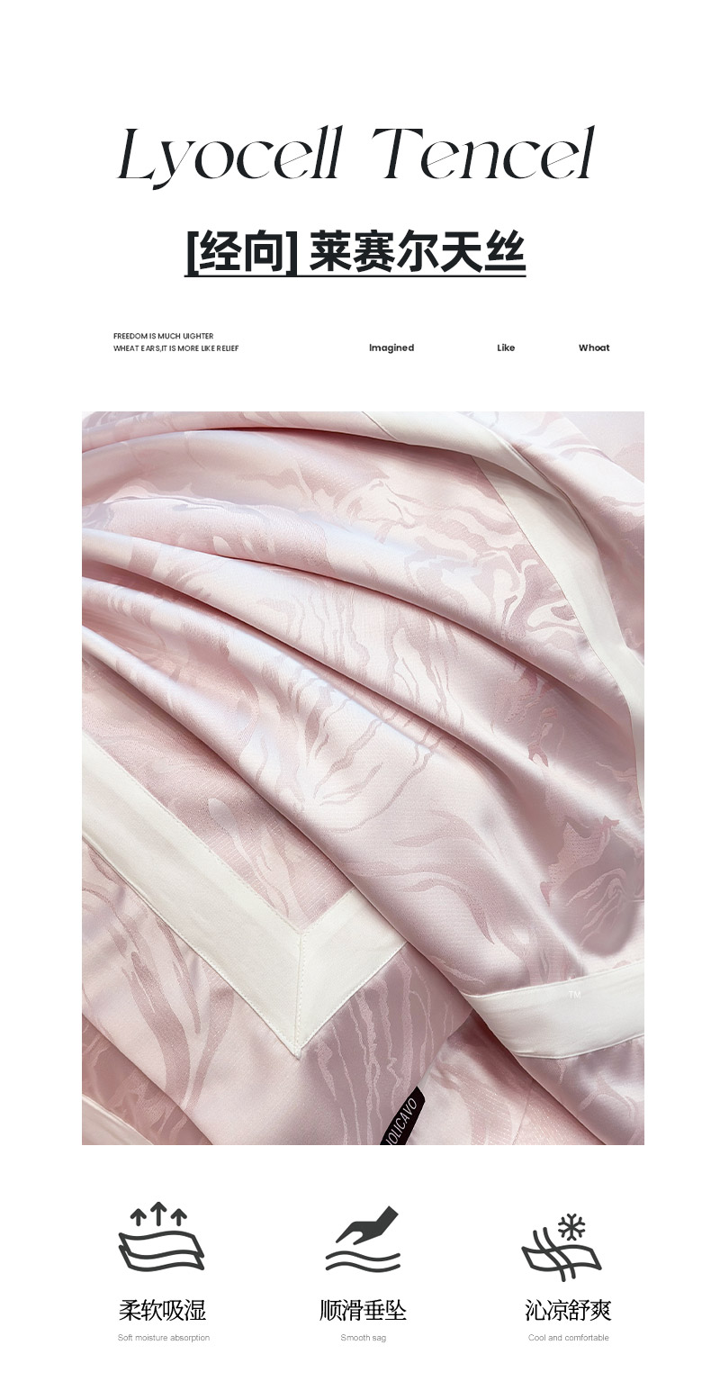 商品名称:乔利·卡沃 2025新品床上用品高端A类100支天丝棉贡缎提花四件套全棉纯棉长绒棉夏季轻奢真丝全工艺 南溪-伊莎粉