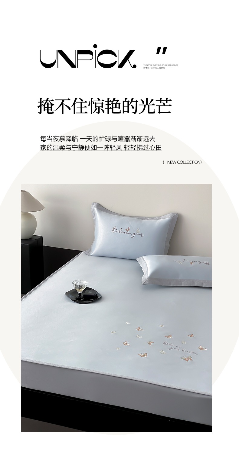 商品名称:由有家居 2025新款7A级高精密A类抗菌色织提花进口刺绣冰丝凉席-蝶影 蝶影-粉