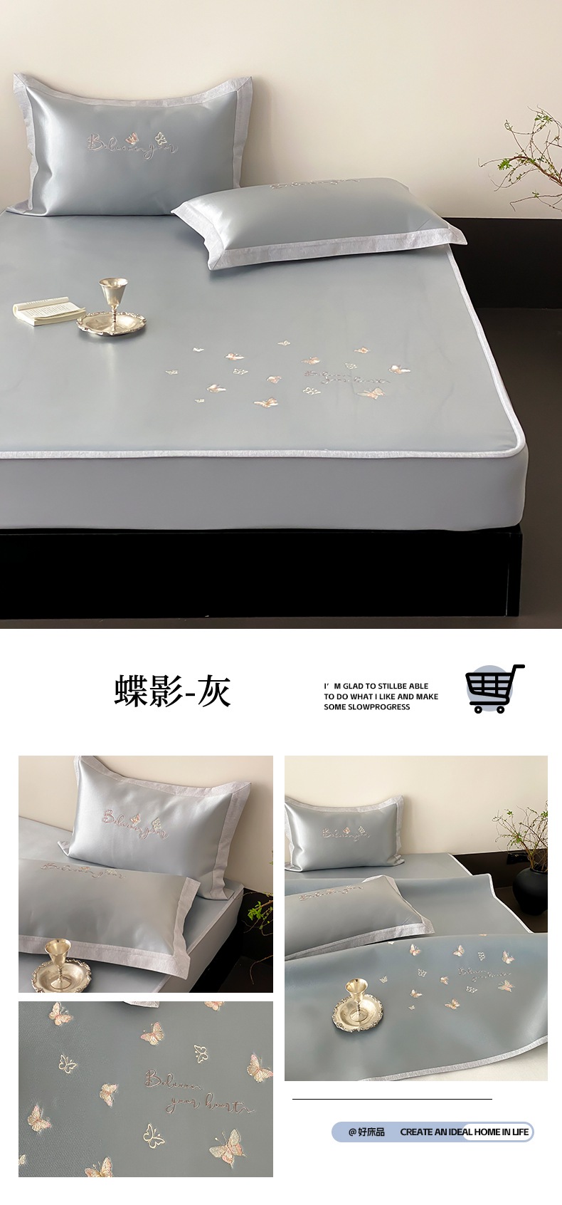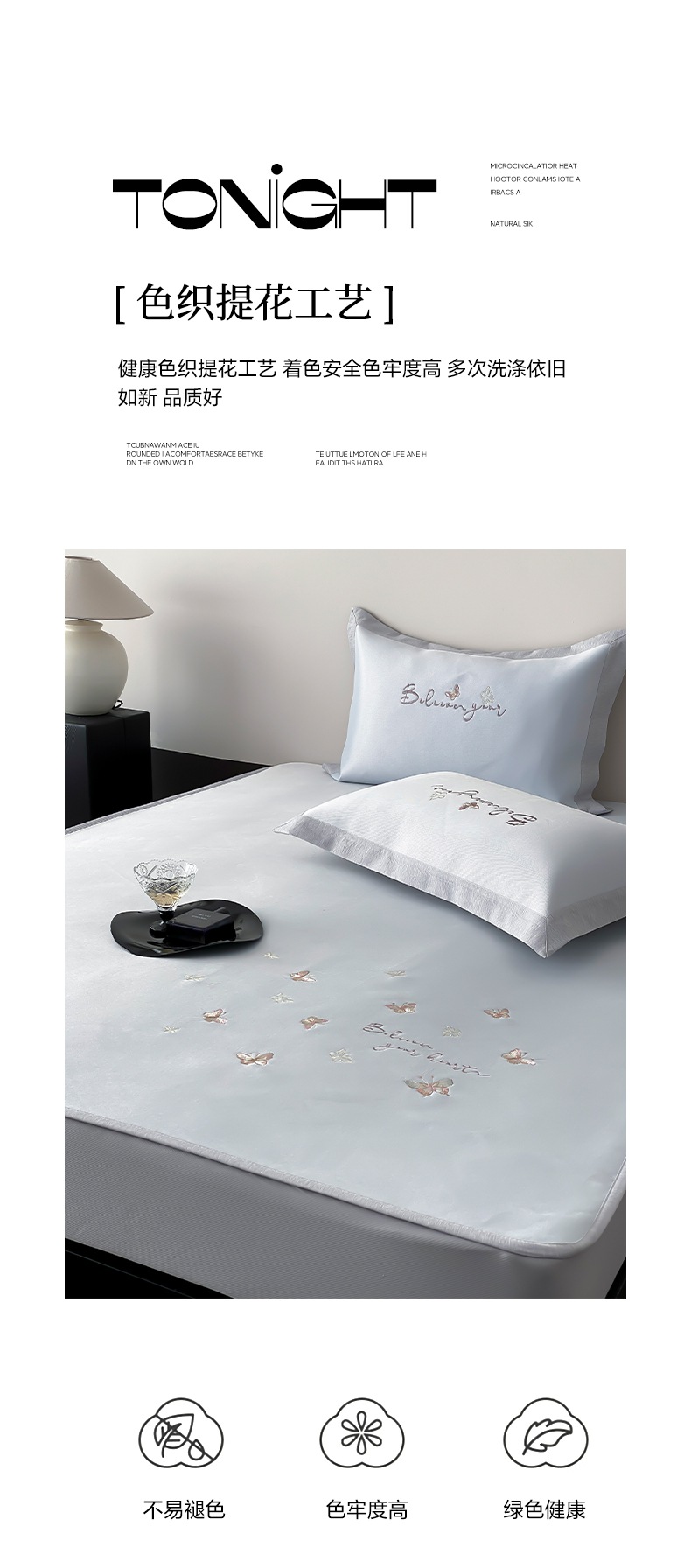 (总)由有家居 2025新款7A级高精密A类抗菌色织提花进口刺绣冰丝凉席-蝶影,蝶影-灰,蝶影-粉,蝶影-绿,蝶影-浅蓝,蝶影-香槟