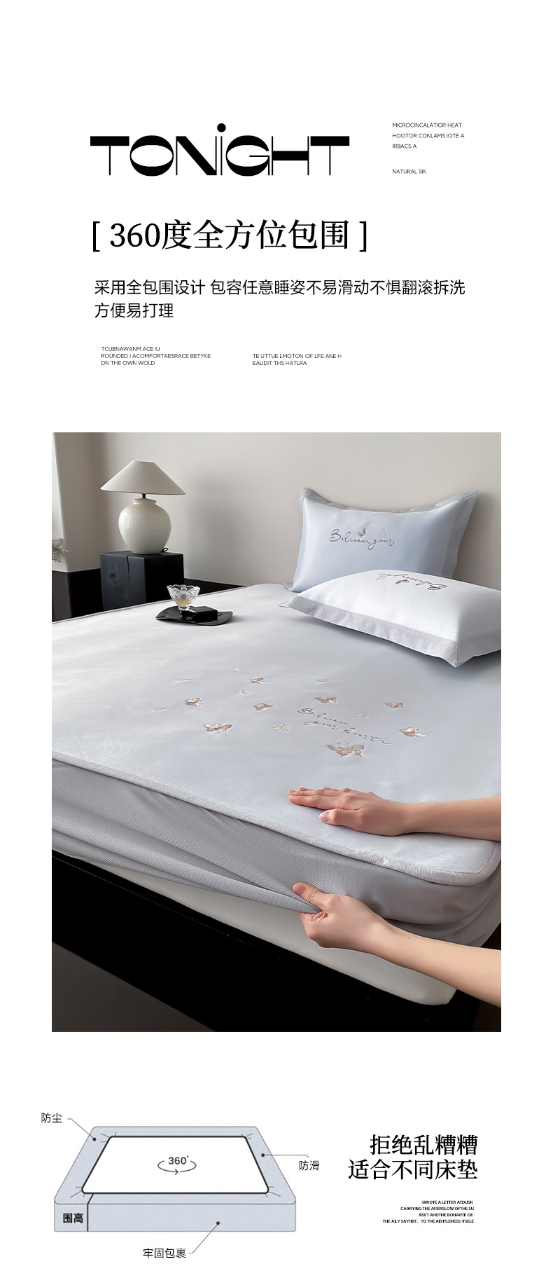 (总)由有家居 2025新品50S双股全棉长绒棉刺绣绗缝夹棉床笠床垫保护罩三件套,舒芙蕾,海清绿,慕晴粉,奶茶咖,暖心粉,星辰灰,星光蓝,珍珠白,组合图