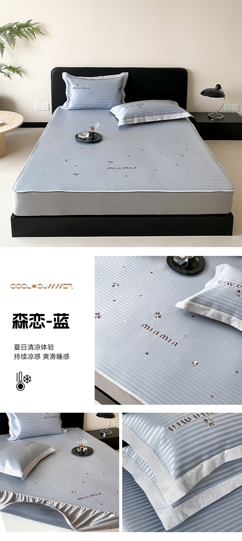 (总)由有家居 2025新款轻奢7A高精密抗菌可水洗色织提花进口刺绣冰丝凉席-森恋,森恋-灰,森恋-粉,森恋-咖,森恋-蓝,森恋-绿