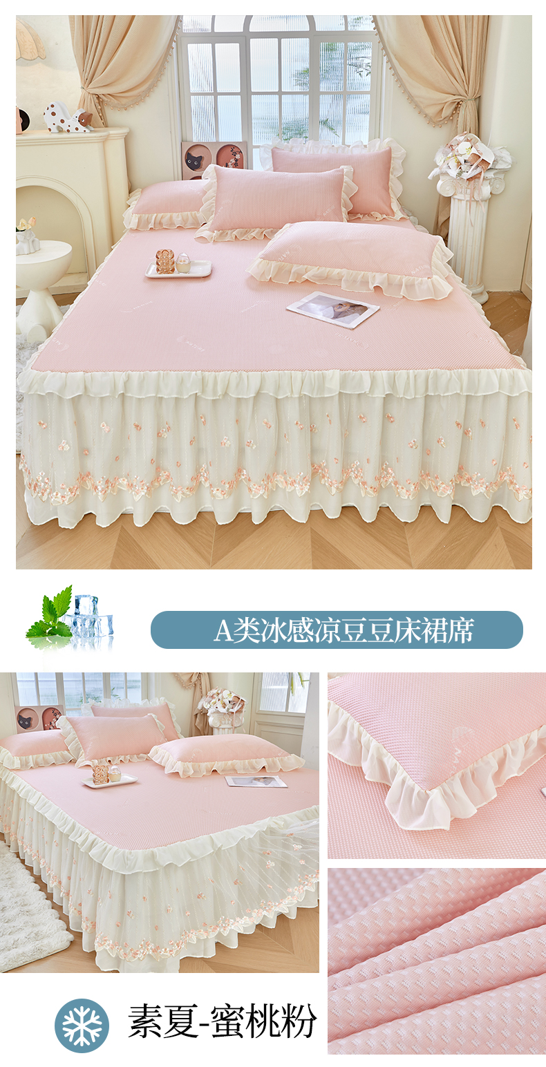 锦格2025年新款A类冰感凉豆豆床裙席 素夏-蜜桃粉