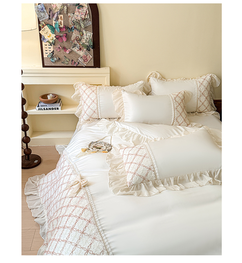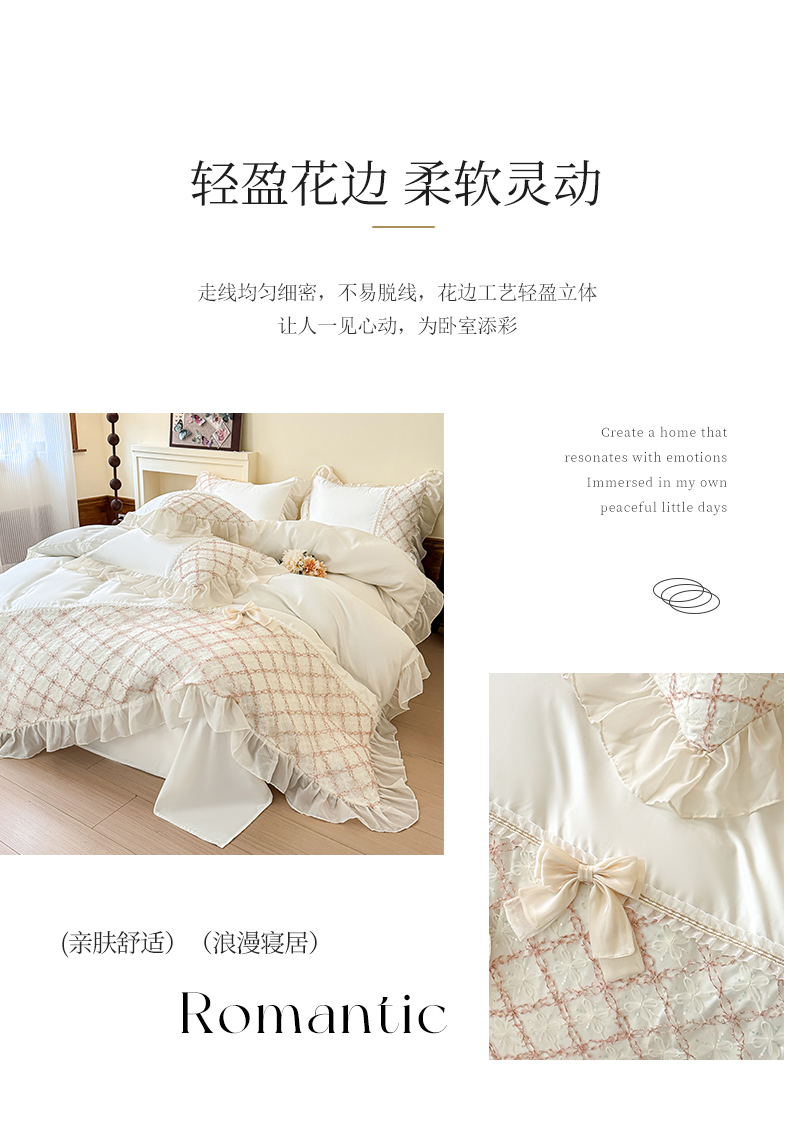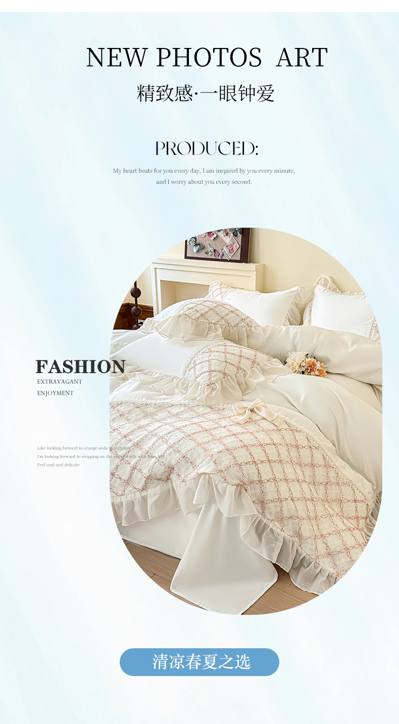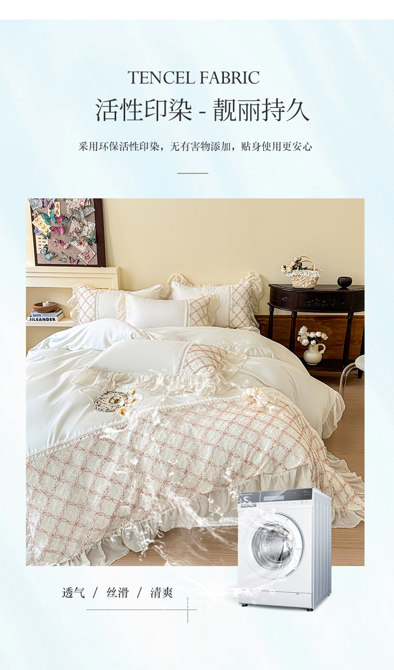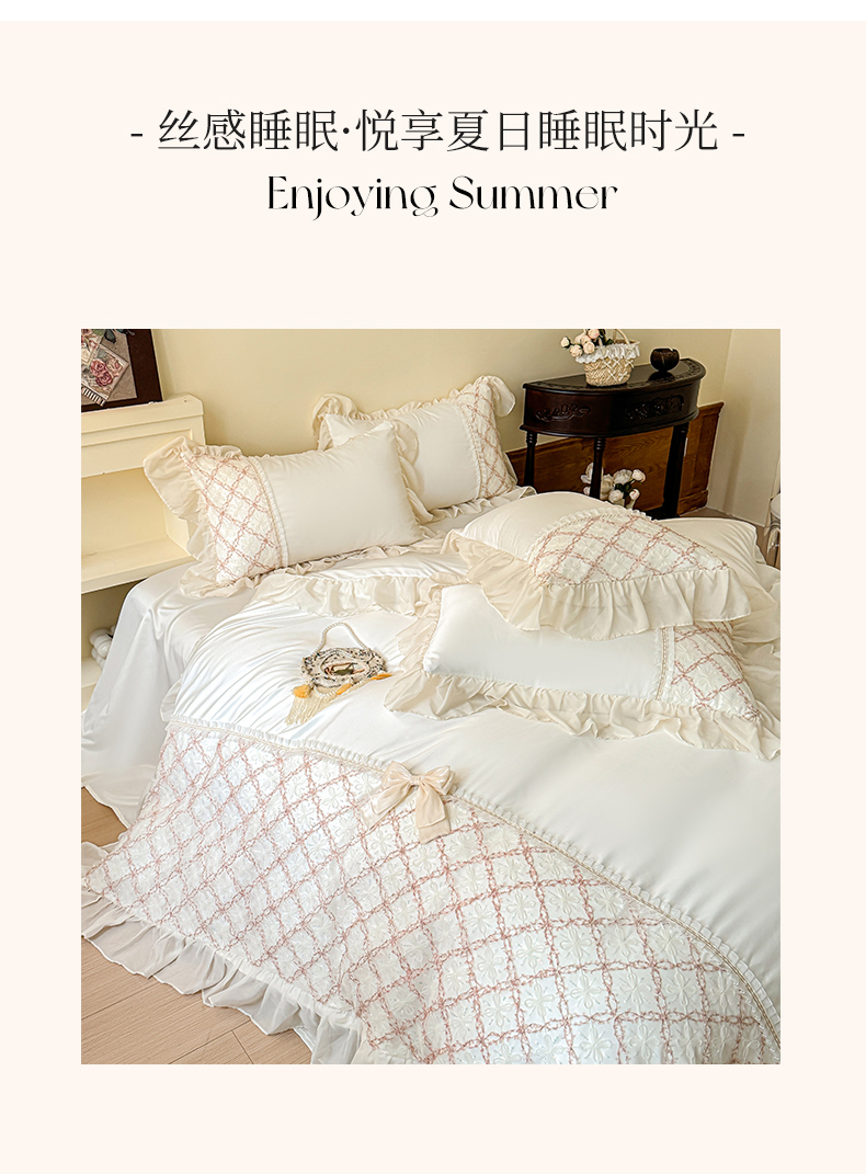 (总)凯美家居 2025新款水洗真丝蕾丝刺绣四件套,爱丽莎 浅粉,爱丽莎 奶白,爱丽莎 浅蓝,爱丽莎 浅紫,爱丽莎 香槟
