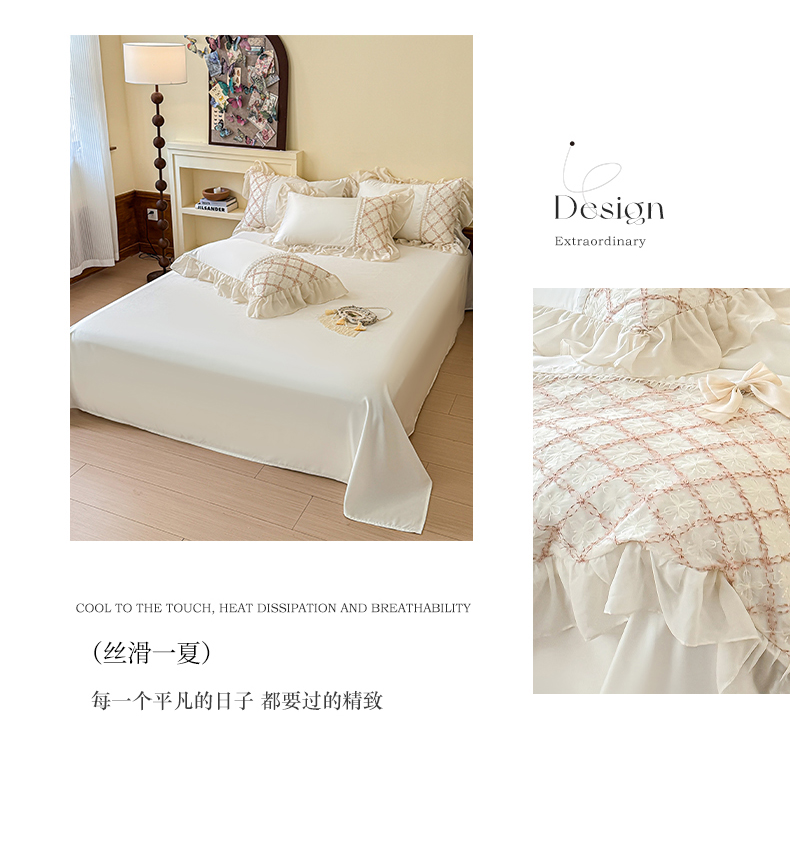 凯美家居 2025新款水洗真丝蕾丝刺绣四件套 爱丽莎 奶白