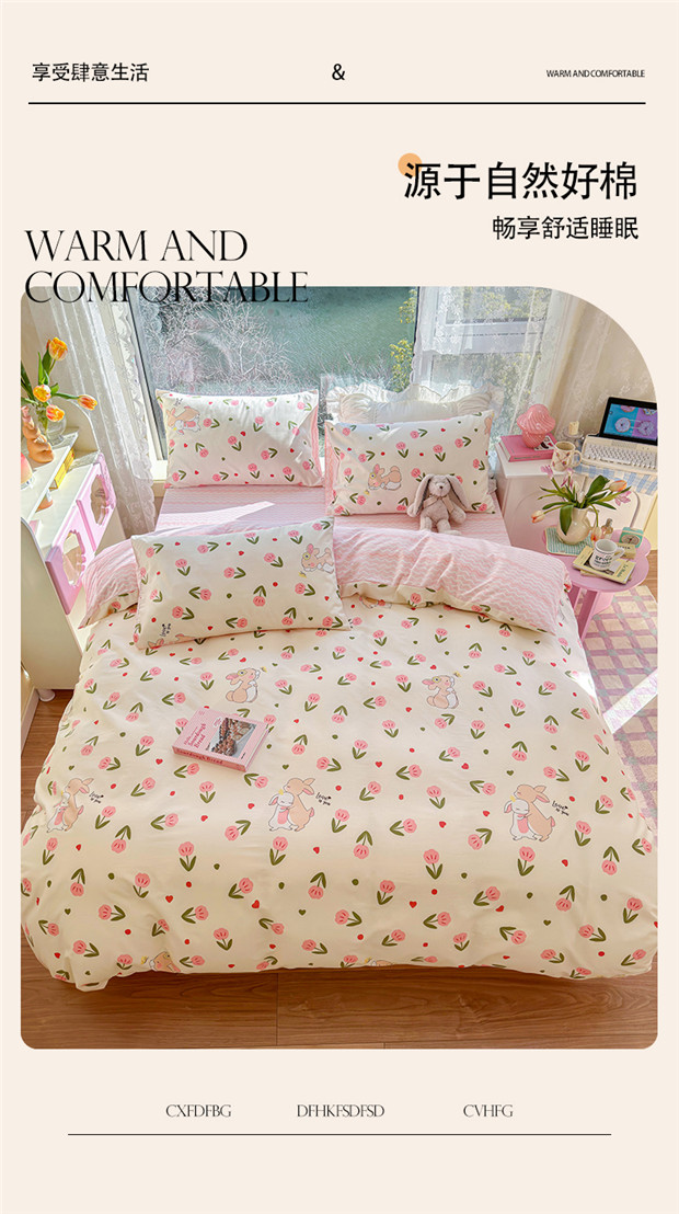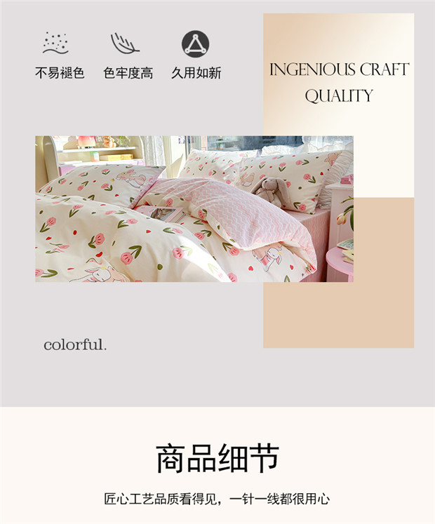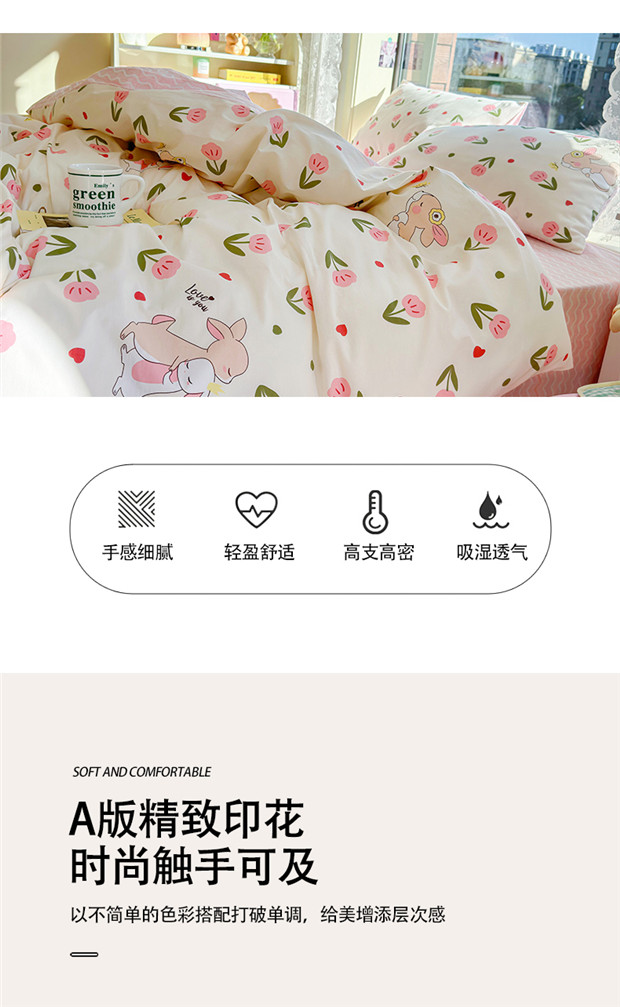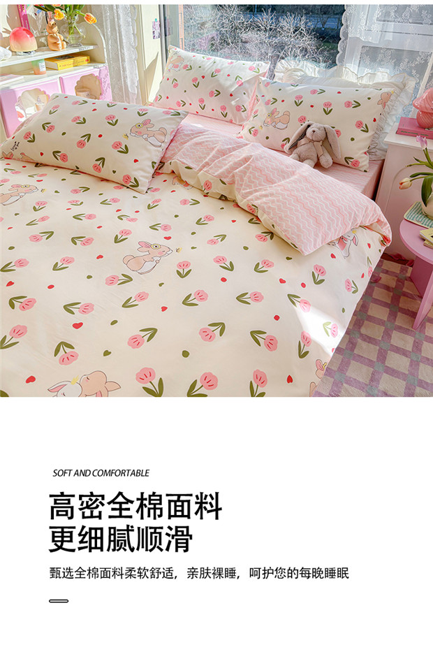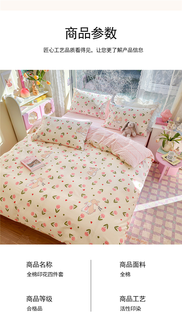 商品名称:琪格格 2025春夏新款全棉纯棉40S13372小清新四件套 小粉兔