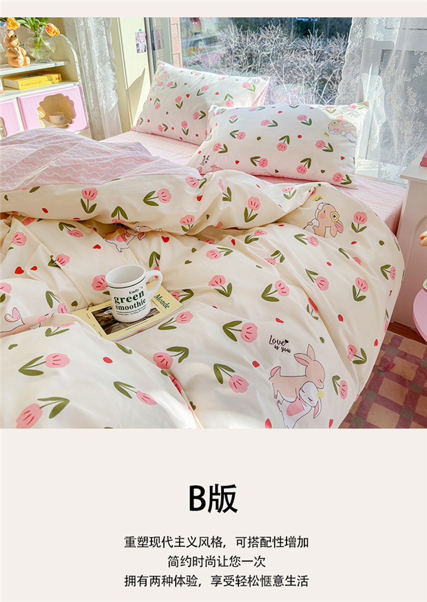 (总)琪格格纺织 2025新款全棉纯棉13372小清新四件套,爱心兔,白兔与熊,彩霞,美郁-紫,萌心兔,皮皮兔,苏珊花园,微雨,小粉兔,熊猫