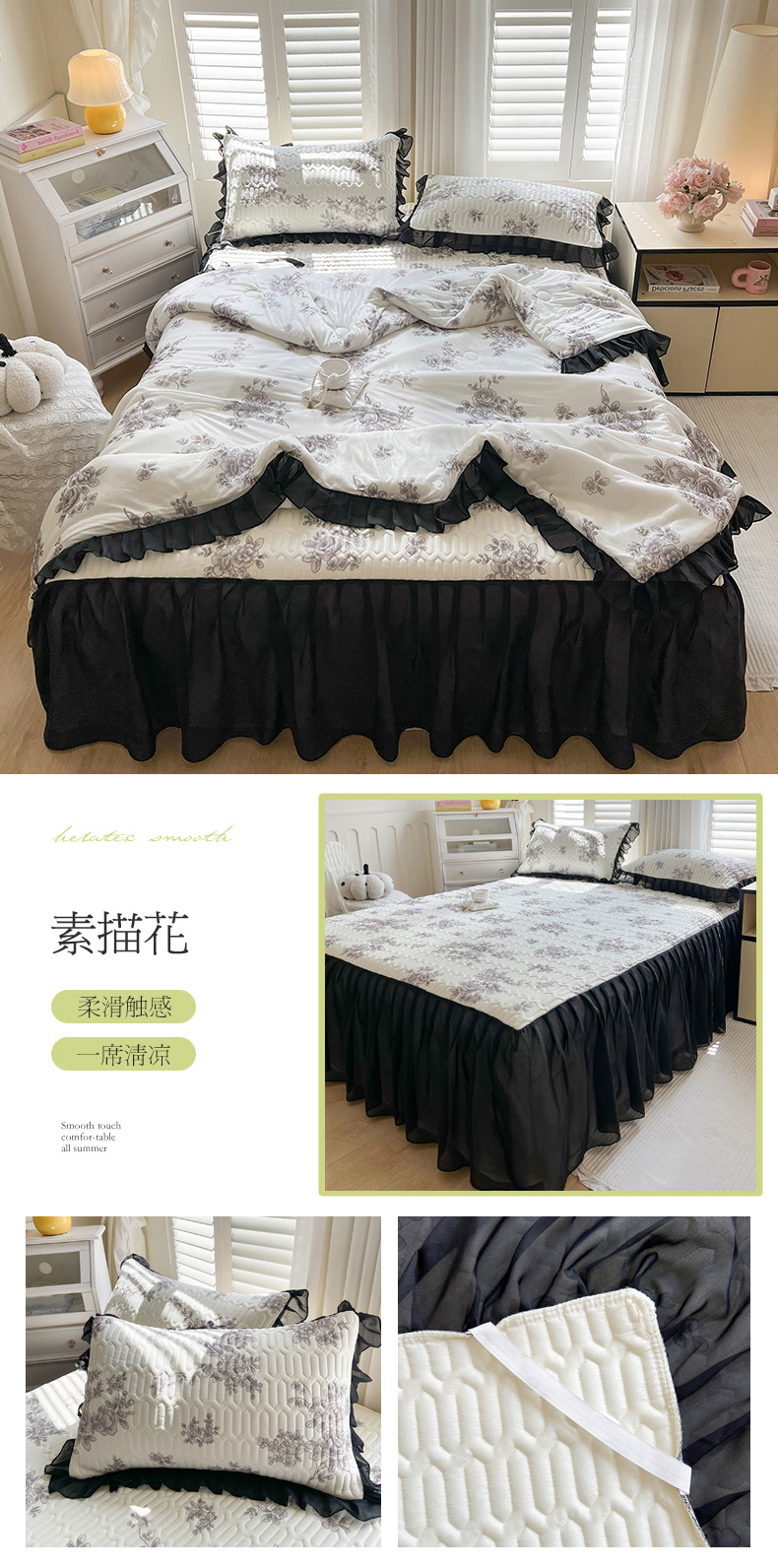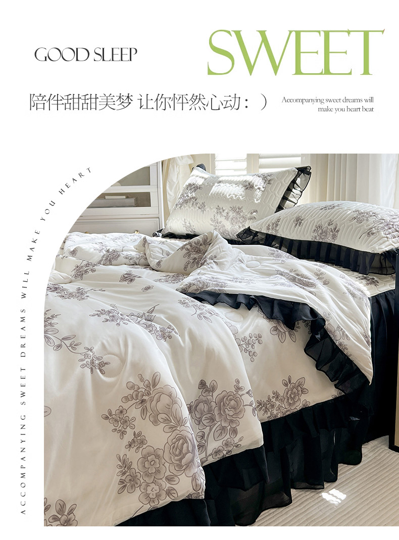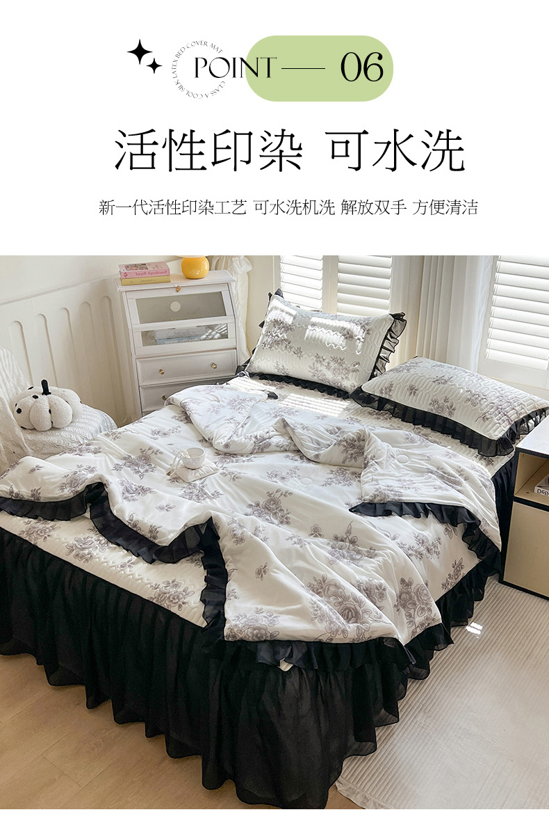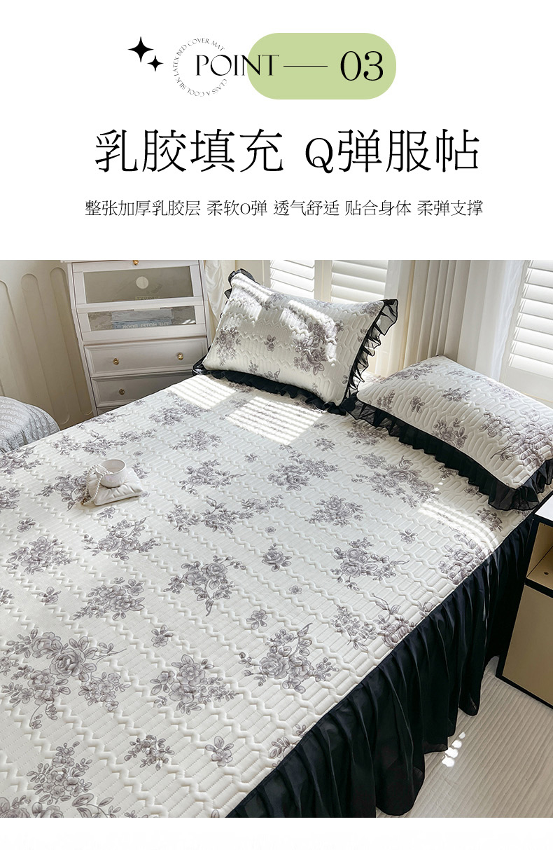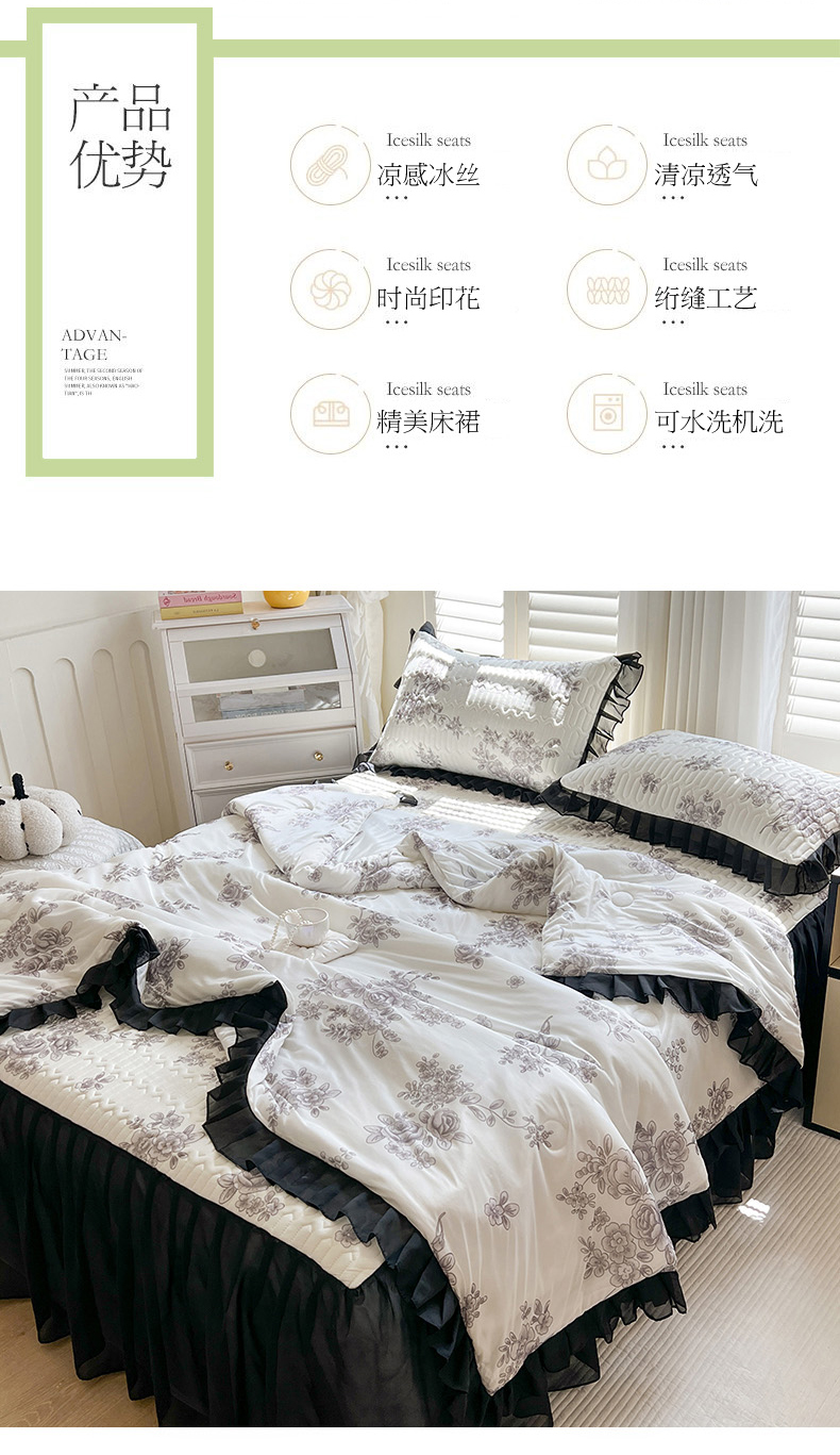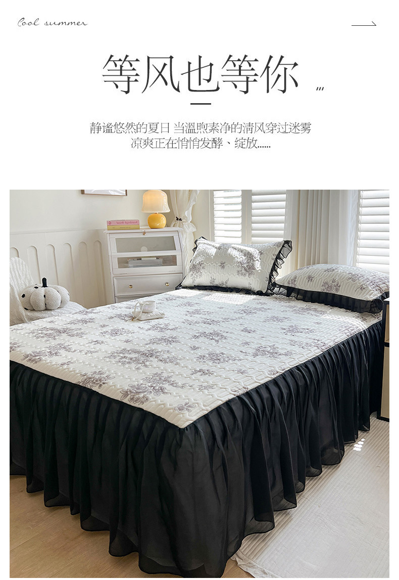 • 91家纺网 家纺一手货源 找家纺 慕澄2025新款小版印花床裙款乳胶凉席凉感丝夏被四件套 素描花