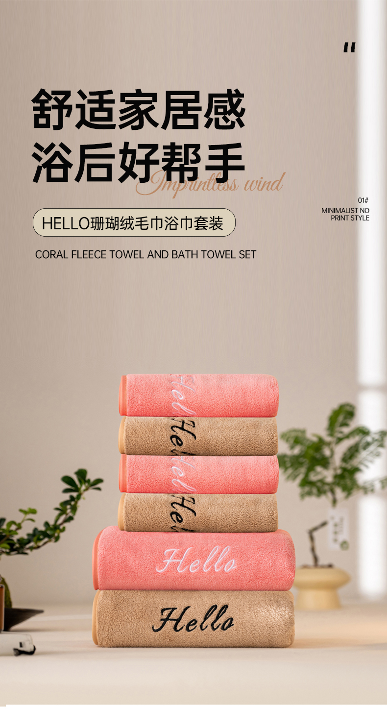 商品名称:彩虹毛巾2025新款Hello珊瑚绒毛巾浴巾两件套跨境加厚吸水毛巾浴巾套装 70*140cm浴巾一条-咖色