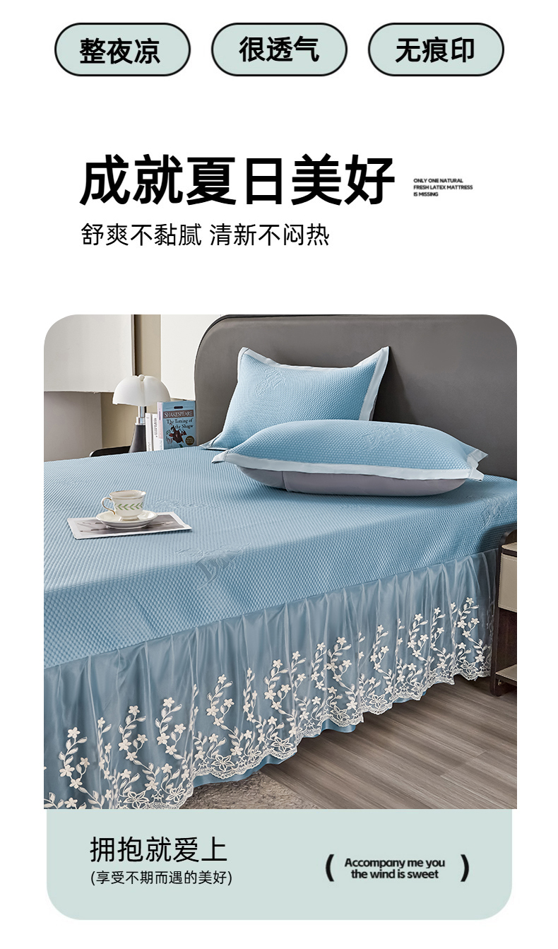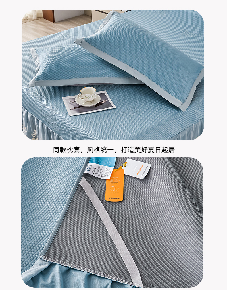 商品名称:正欣·被子·床垫 2025新款冰豆豆凉席-床裙款 蓝色