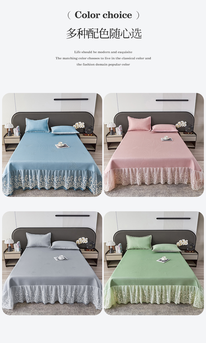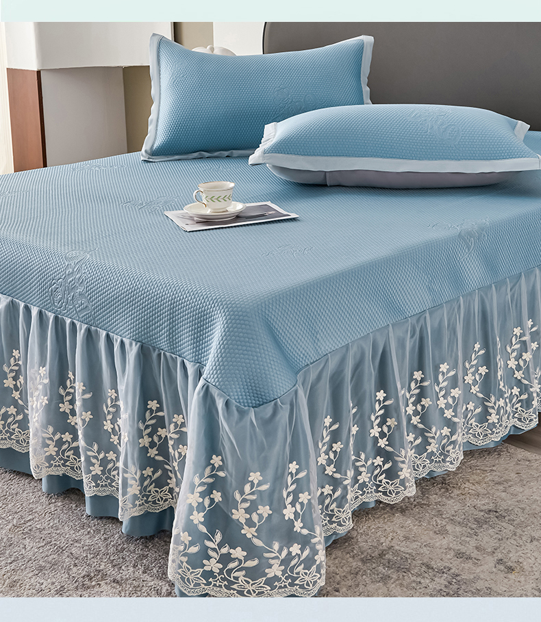 (总)正欣·被子·床垫 2025新款冰豆豆凉席-床裙款,蓝色,灰色,绿色,粉色