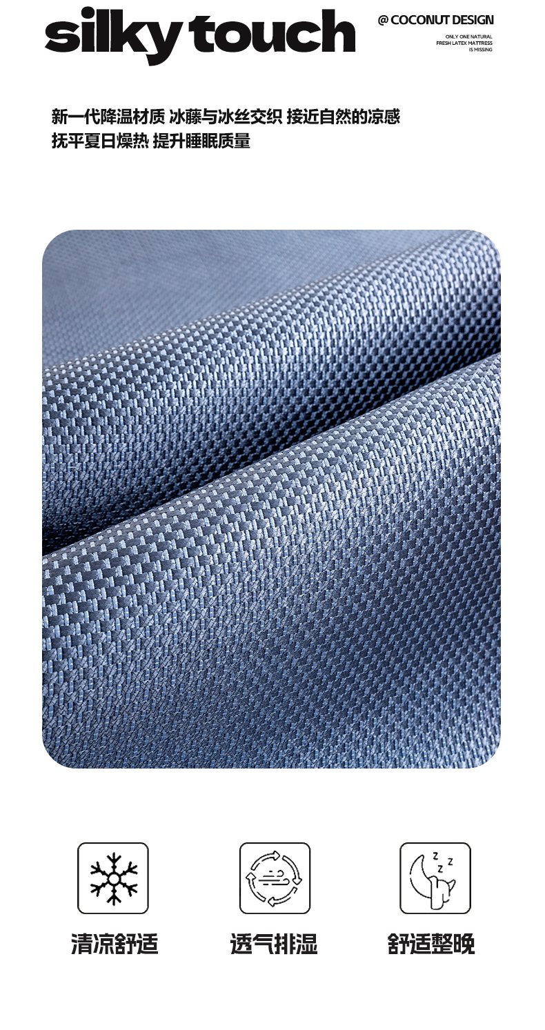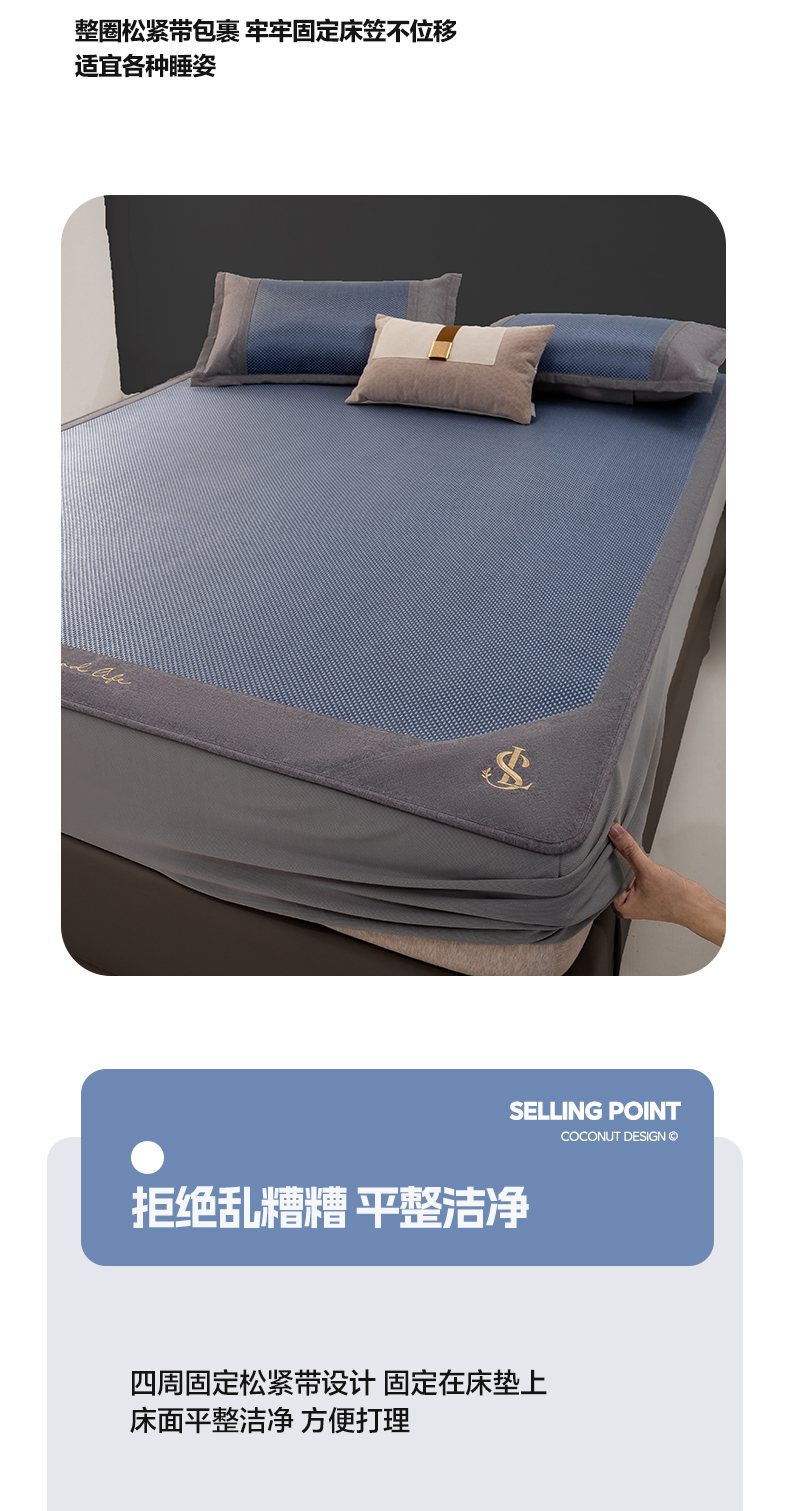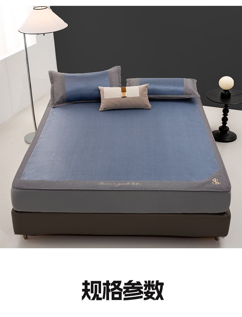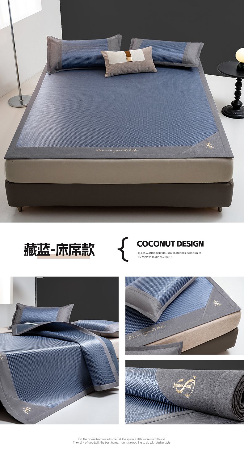商品名称:宜家坊 2025新款A类纯色绣花冰藤席凉席三件套 藏蓝-床笠款