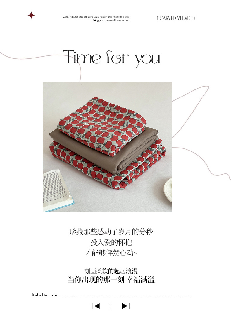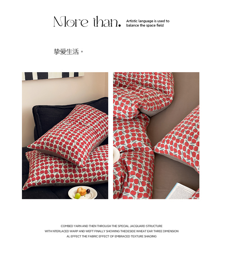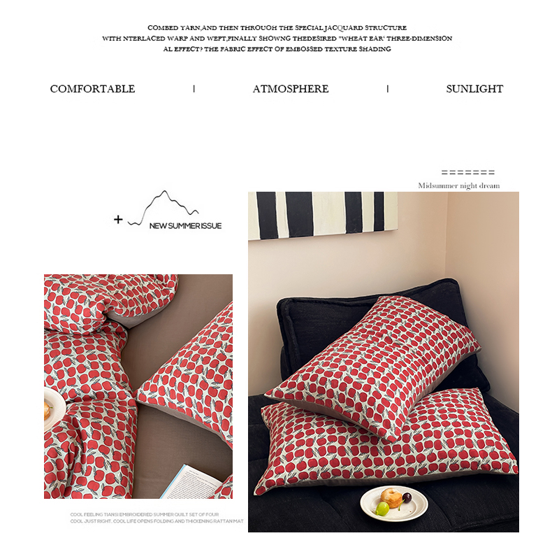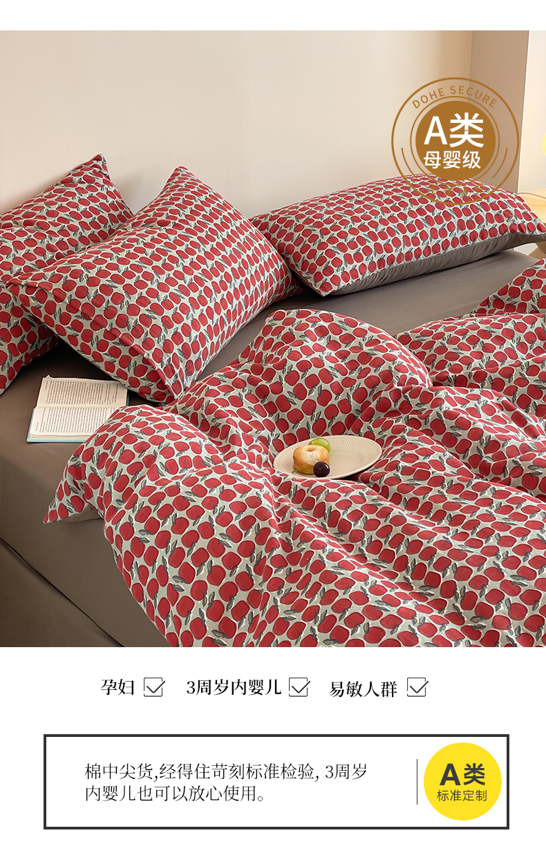 商品名称:萝莉家纺 2025新款全棉复古美式风水洗双层纱印花四件套 红苹果