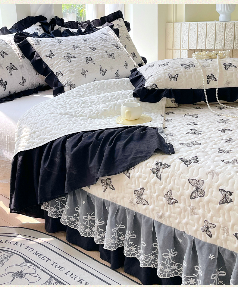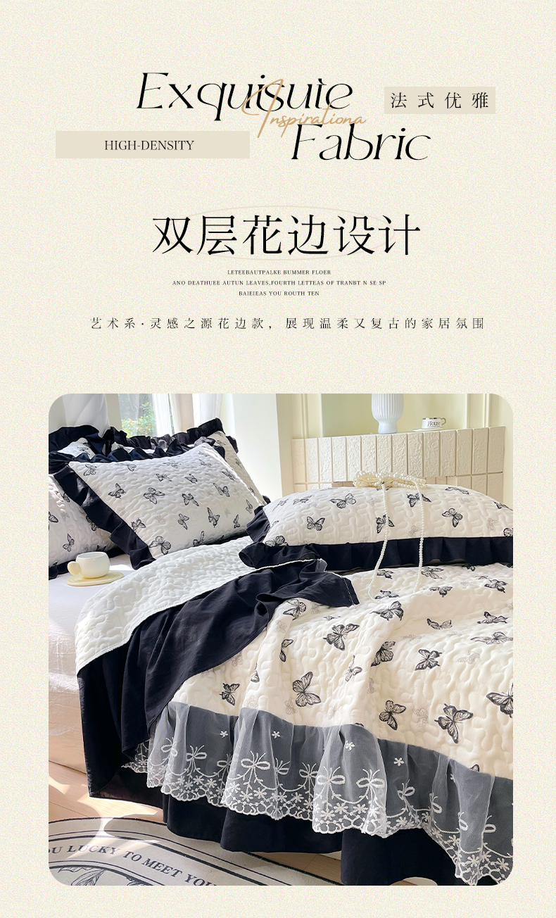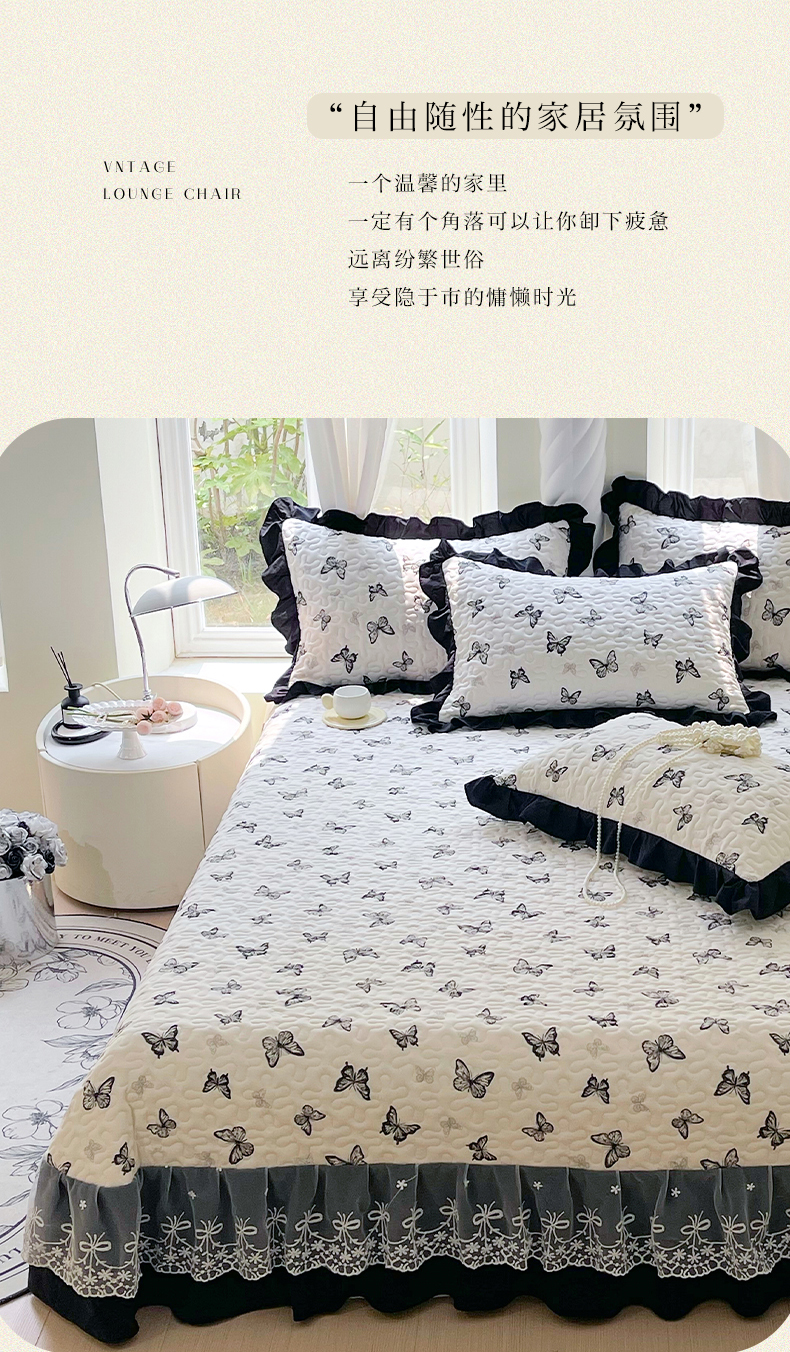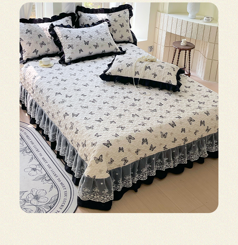 雨彤家纺 2025年新款赫本风云朵水洗棉夹棉双层花边床盖 蝴蝶-赫本风
